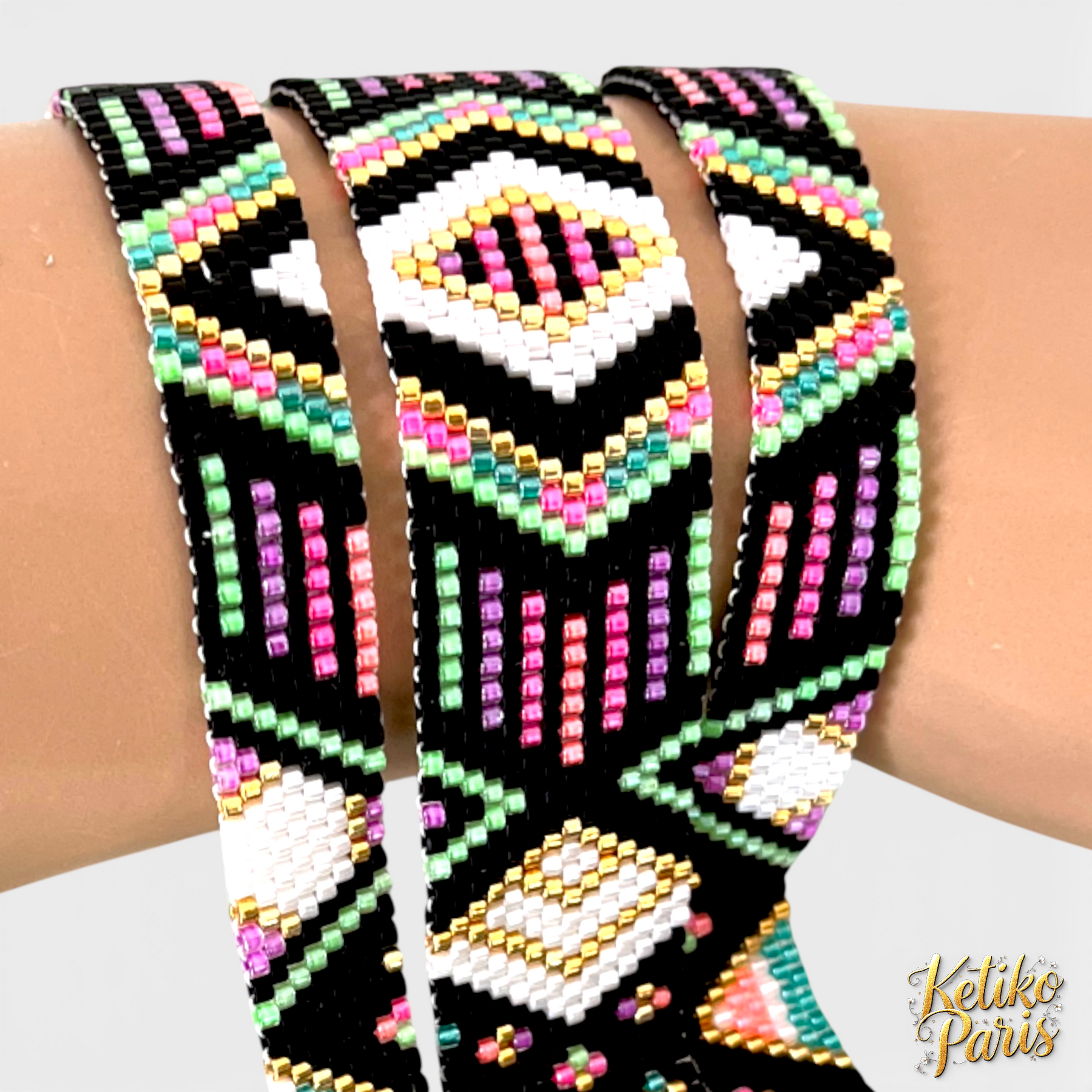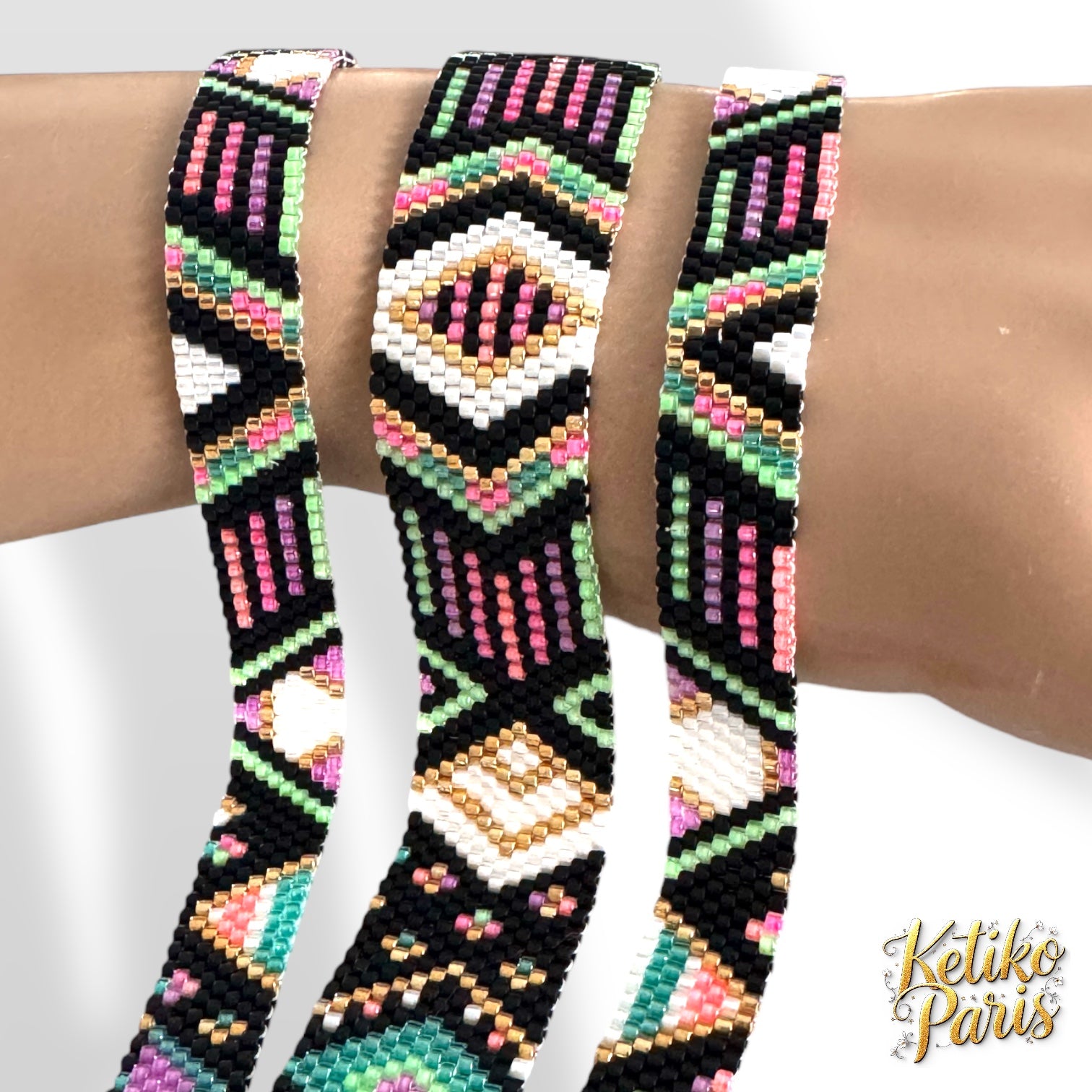 Schéma et explications pour réalisation de 4 bracelets traditionnels tissé en peyote pair avec des perles miyuki delicas 11/0