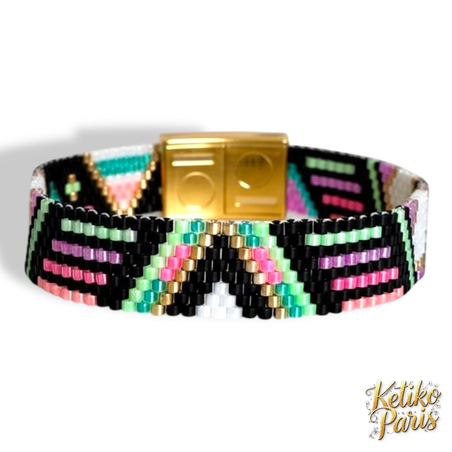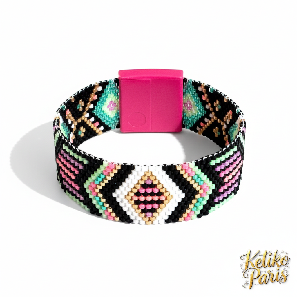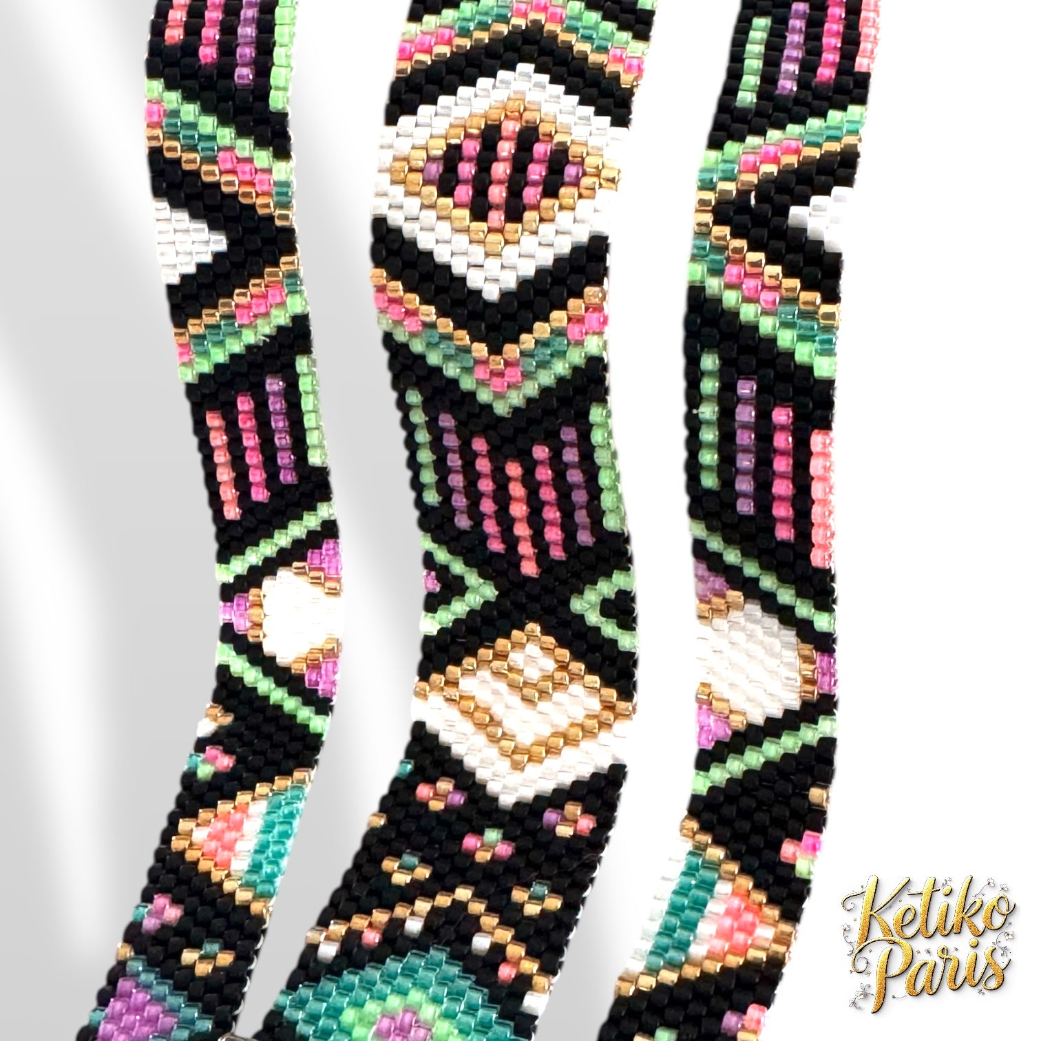 Ce modèle est réalisé dans un tissage peyote classique, pair ou impair. Je propose parfois une version paire et impaire dans le même modèle
