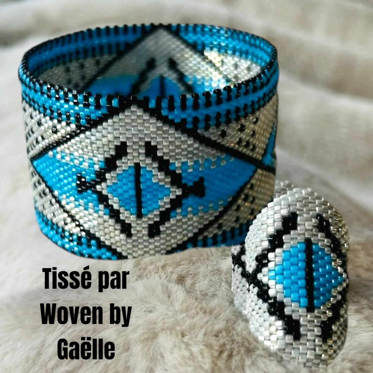 Les bagues sont tissées en point peyote. L'anneau est tissé circulairement puis le reste de la bague est tissé linéairement pour les modèles en pointe.