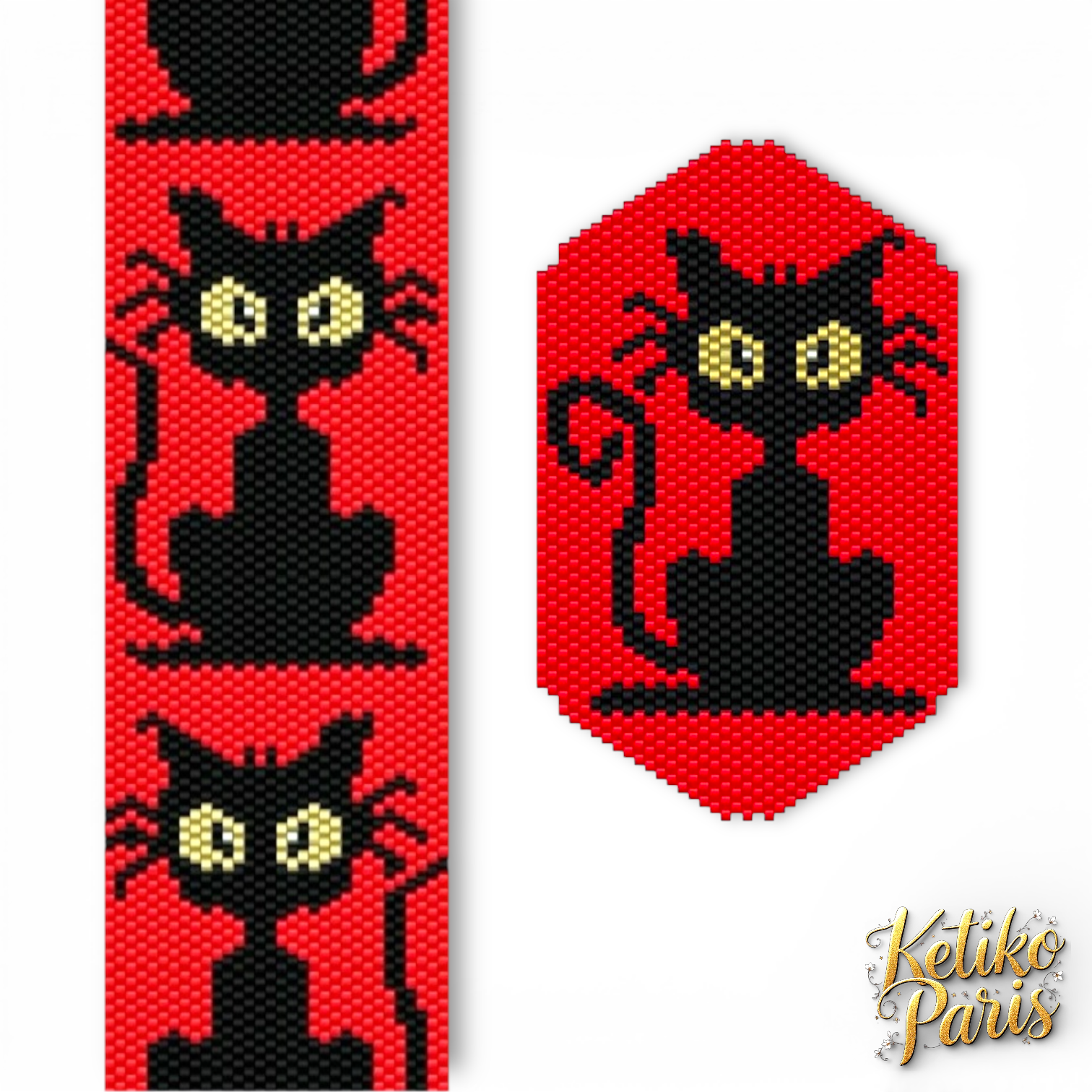 DIY CHAT NOIR Vertical Peyote Pattern - Bracelet et pendentif