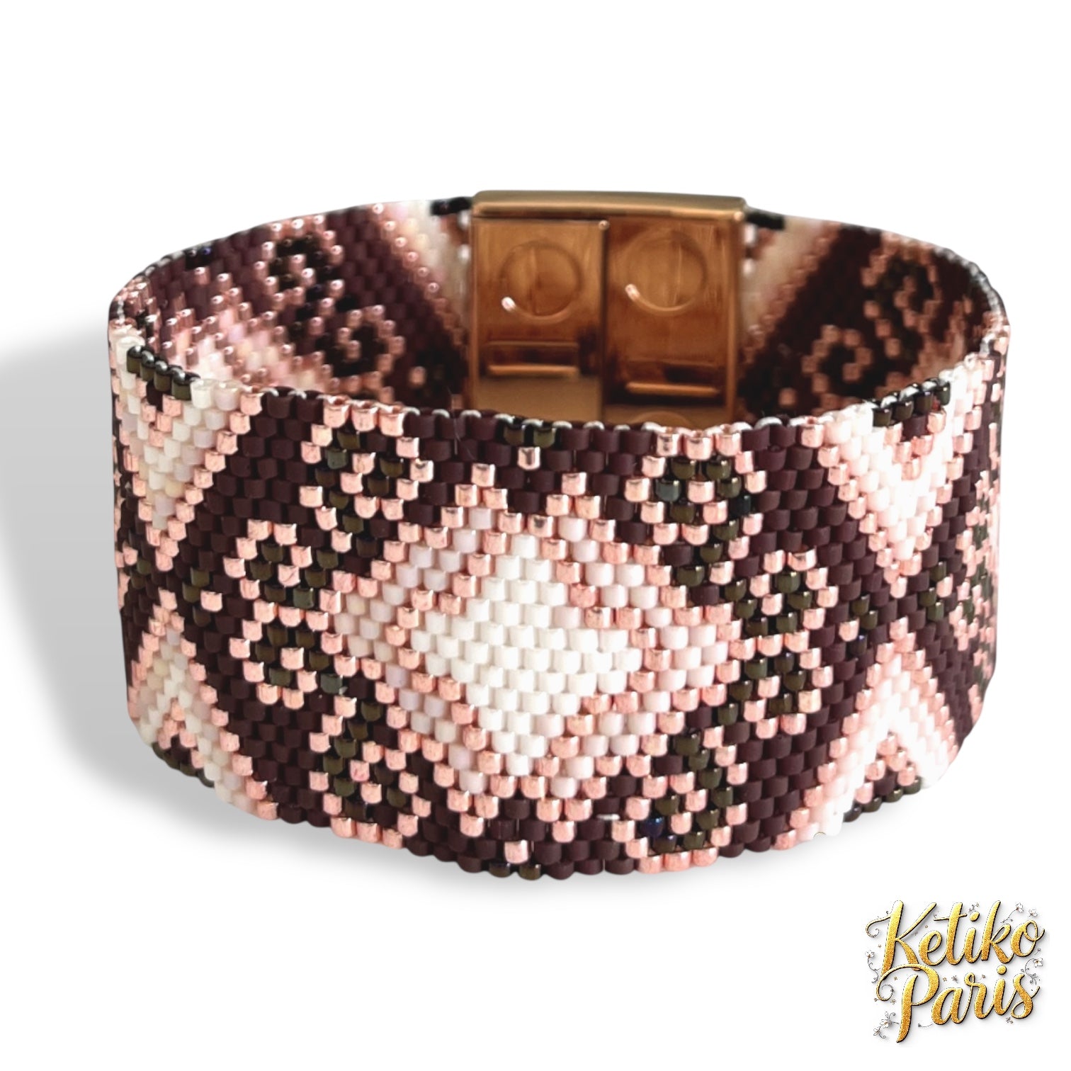 Ce modèle est réalisé dans un tissage peyote classique, pair ou impair. Je propose parfois une version paire et impaire dans le même modèle