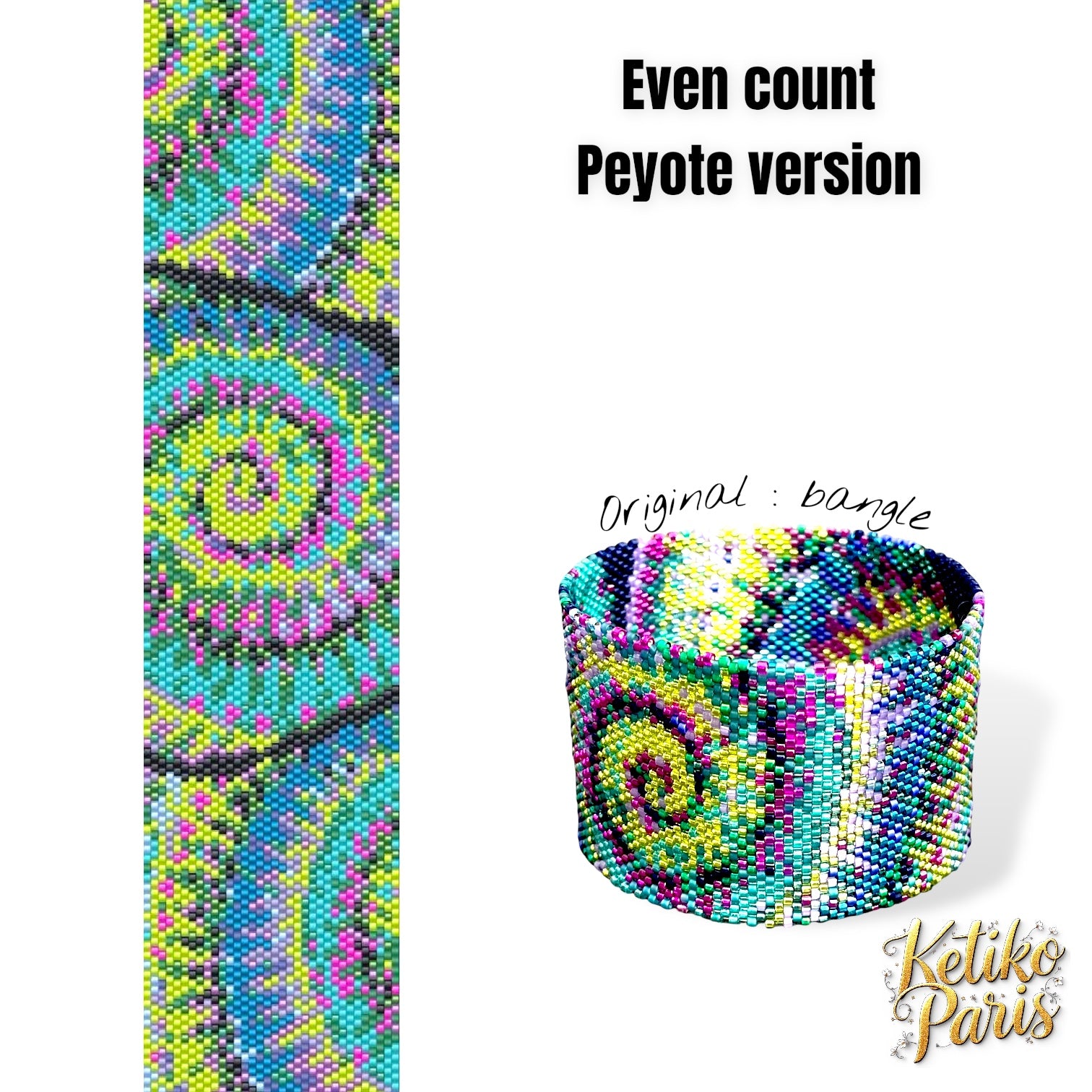Ce modèle est réalisé dans un tissage peyote classique, pair ou impair. Je propose parfois une version paire et impaire dans le même modèle