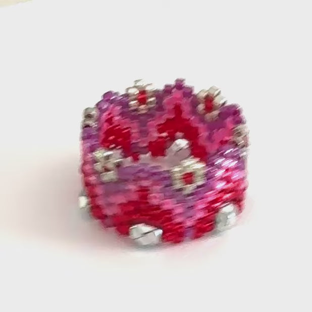 The rings are woven in peyote stitch. The ring is woven circularly then the rest of the ring is woven linearly for pointed models.