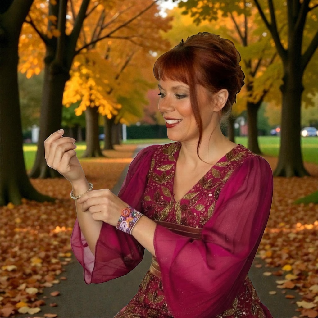 For versions created from the bangle, I try to stay as close to the original as possible, but there are bound to be differences since the beads are not symmetrical. The colors used are the same.