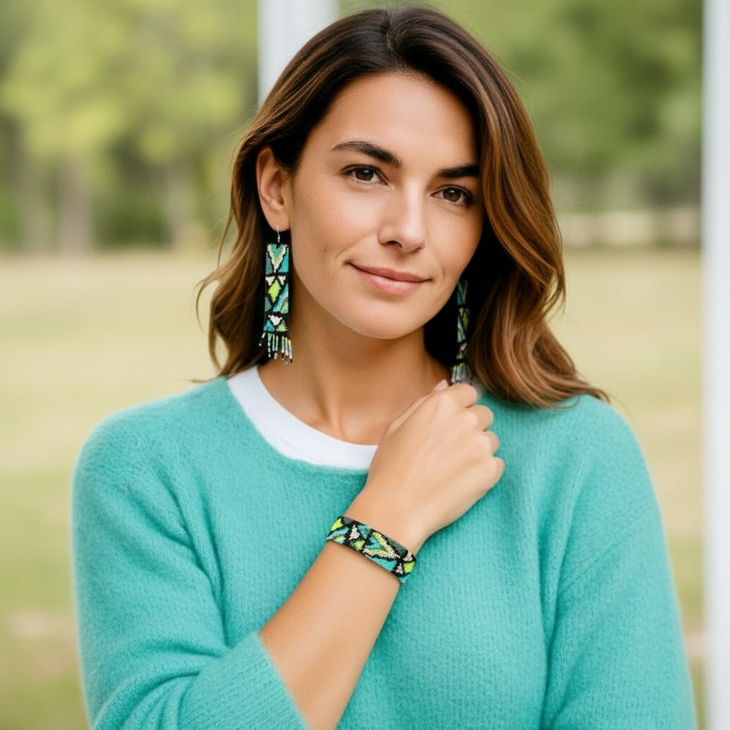 Even count peyote patterns and instructions for making a pendant or earrings woven with miyuki delica 11/0 beads as well as the matching bracelet.