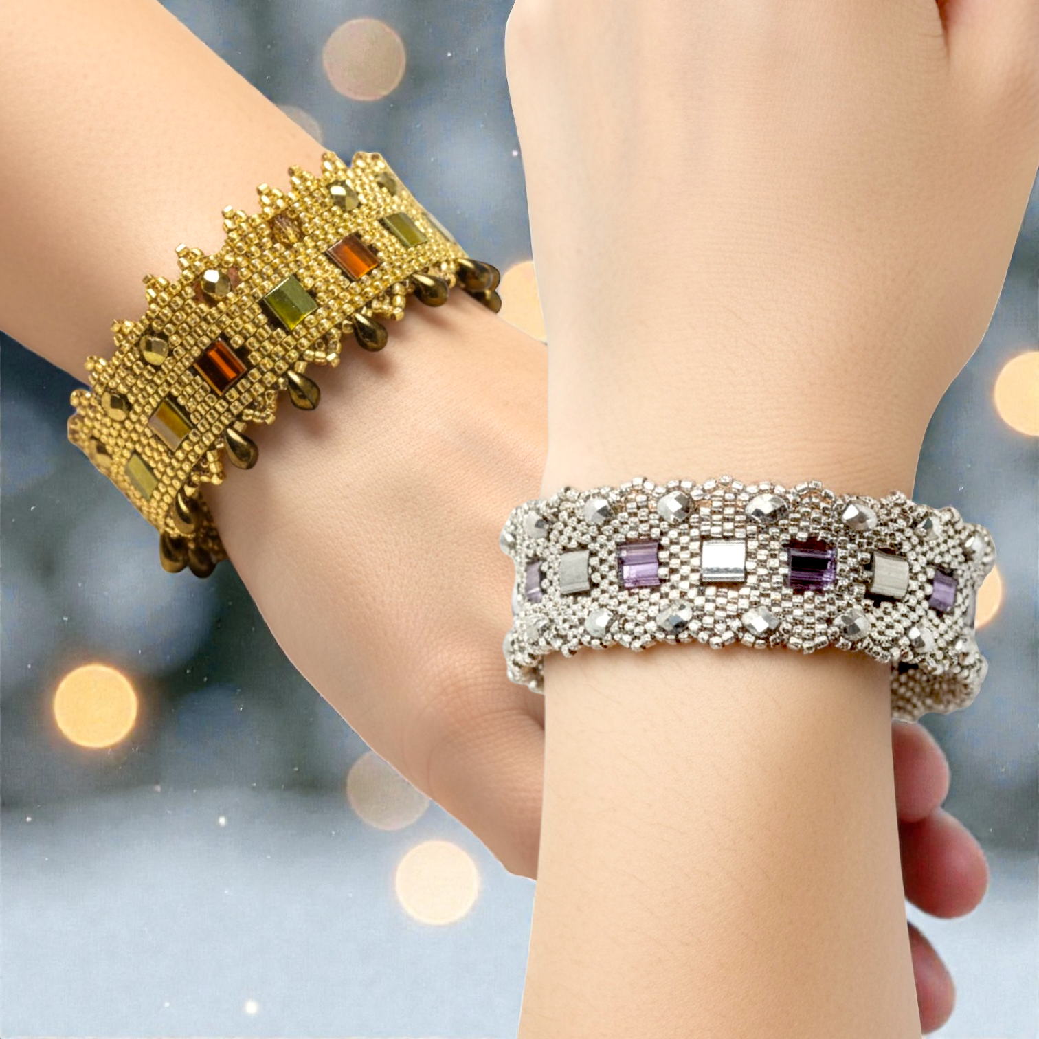 You will receive the beads and the diagrams are sent separately by email. The 2 weaves will be sent to you. You can choose the color (gold or silver).