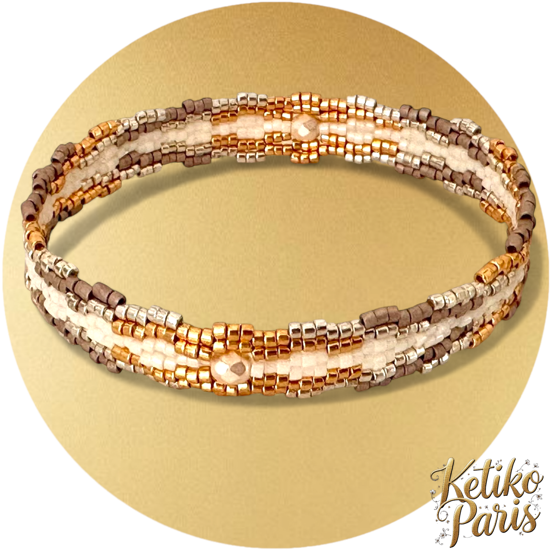 The basic kit: bangle and horizontal weaving includes the linear model and a bangle size M and sometimes L. The other sizes are provided on request if they are not yet online.