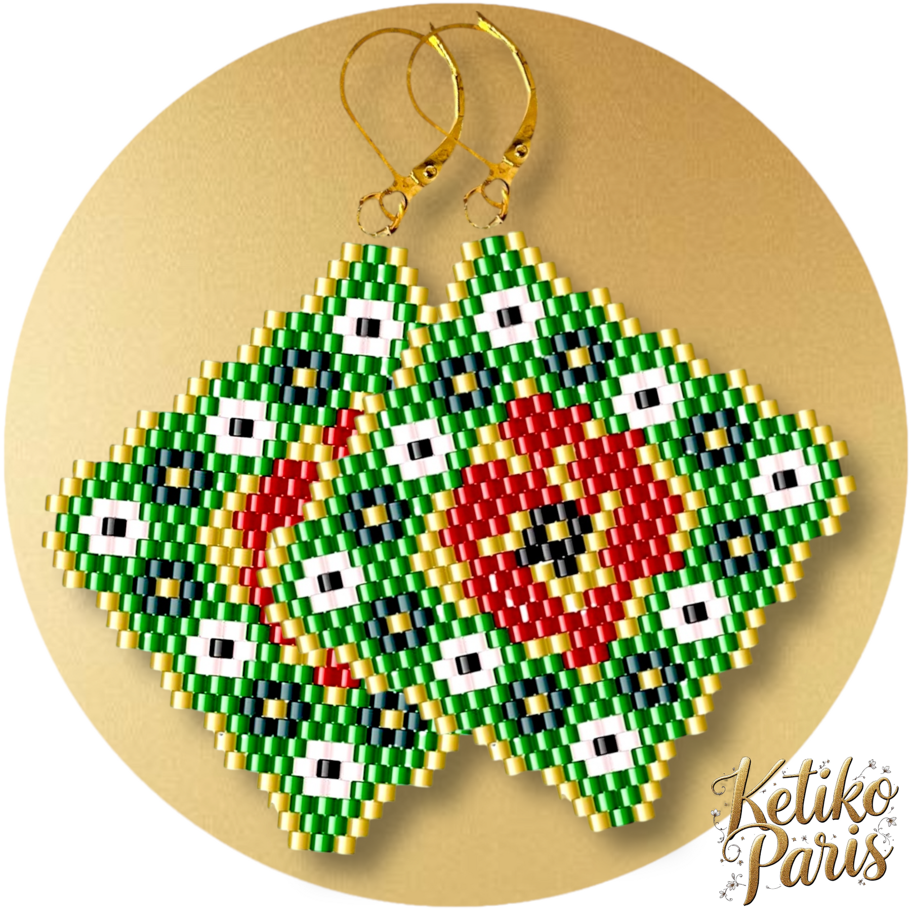Peyote or brick stitch patterns and explanations for earings or Necklace woven with miyuki beads...