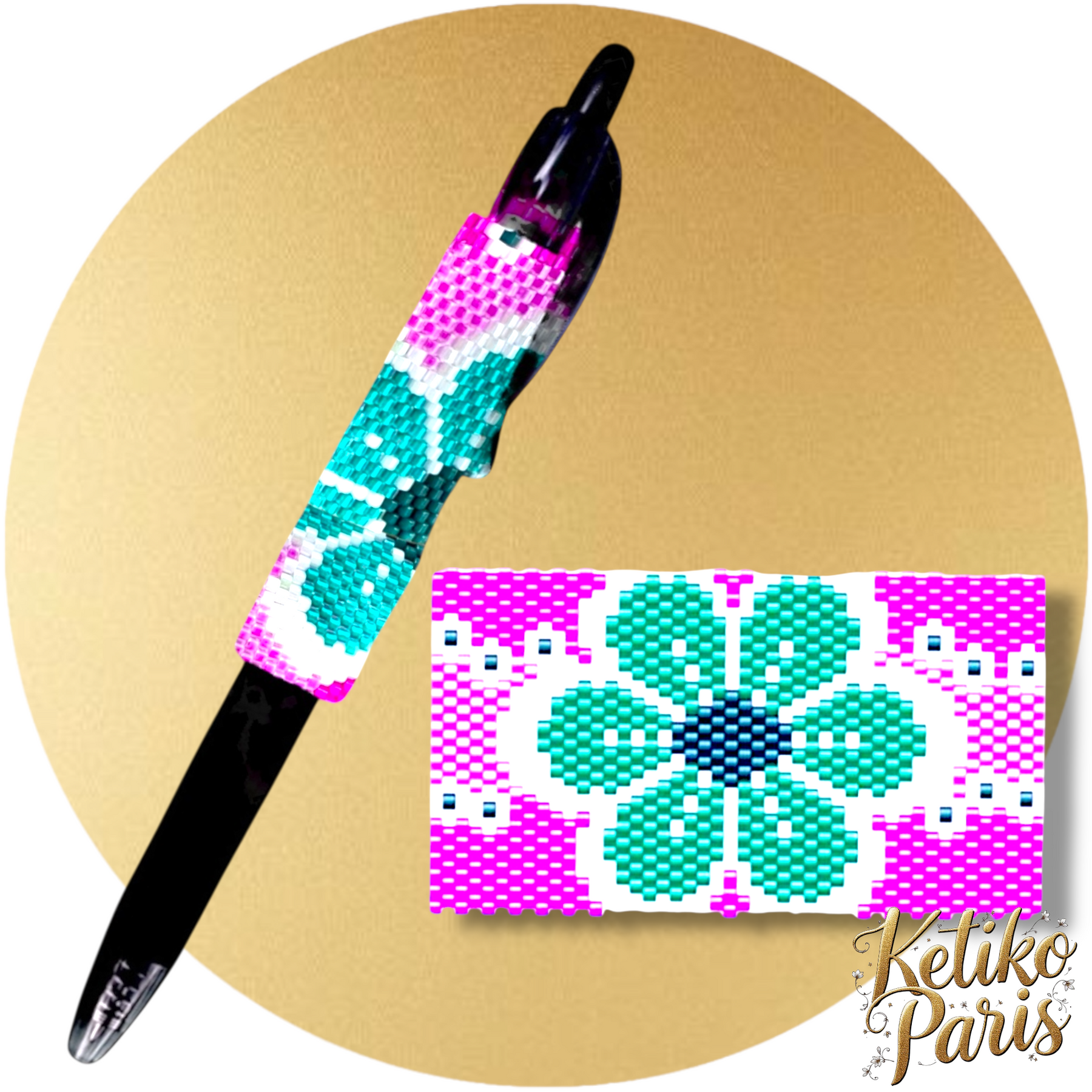 Even Count Peyote stitch pen cover pattern woven with miyuki delicas beads for G2 Pilot pen