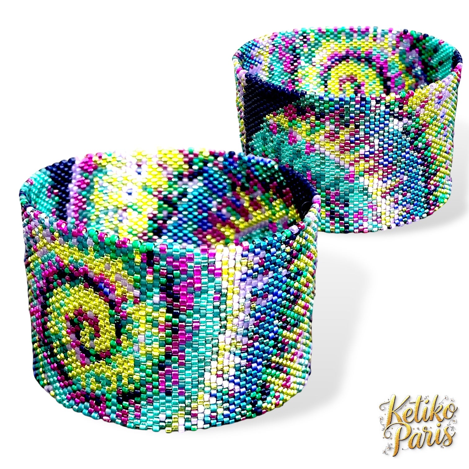 Depending on the model, I can also offer the regular peyote weaving that I call vertical peyote to distinguish it clearly, and also a loom version.