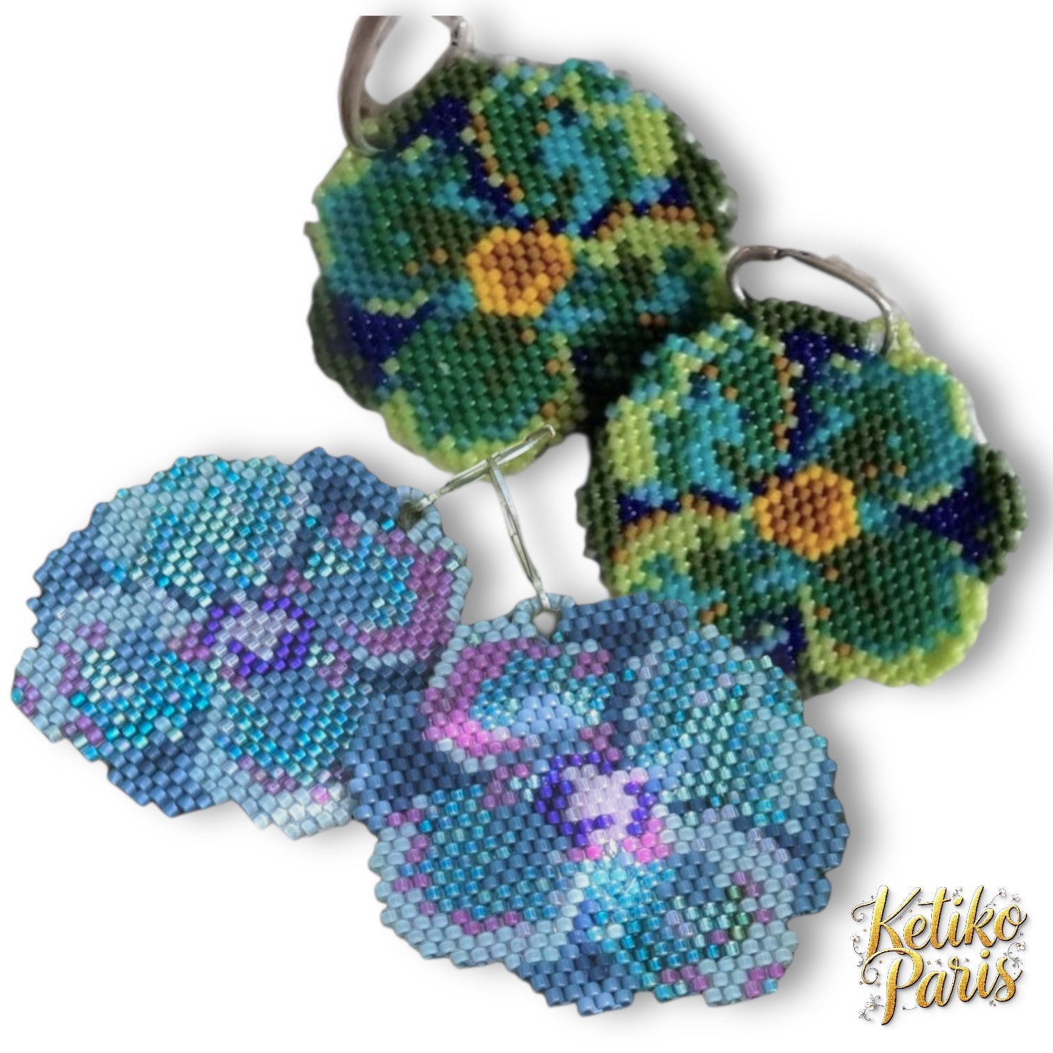 Peyote and Brick Stitch Pattern.  - 2 different patterns : 1 blue and 1 green