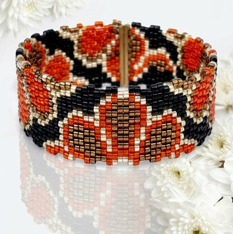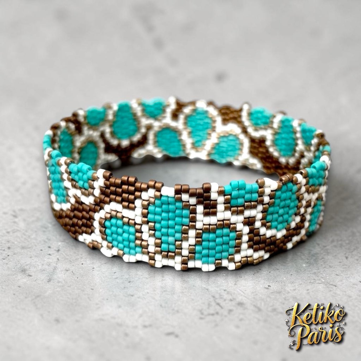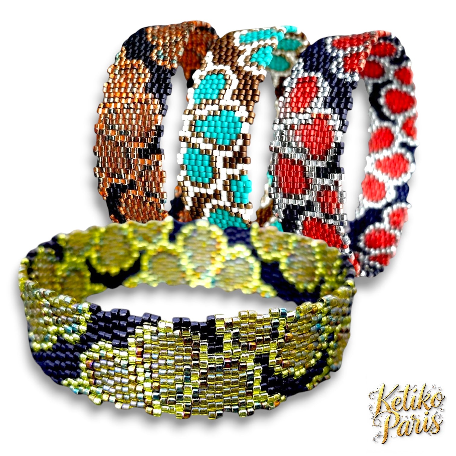 Depending on the model, I can also offer the regular peyote weaving that I call vertical peyote to distinguish it clearly, and also a loom version.