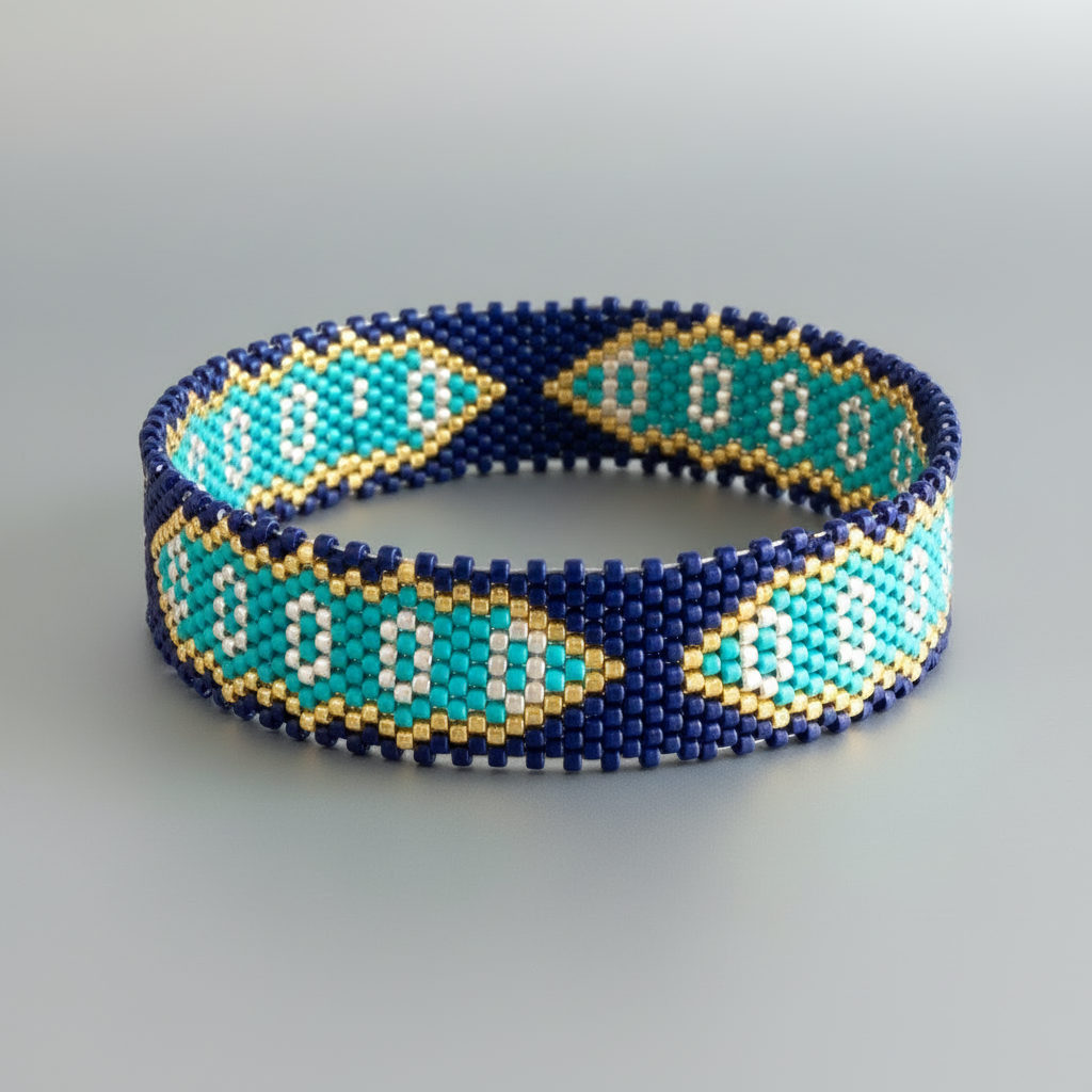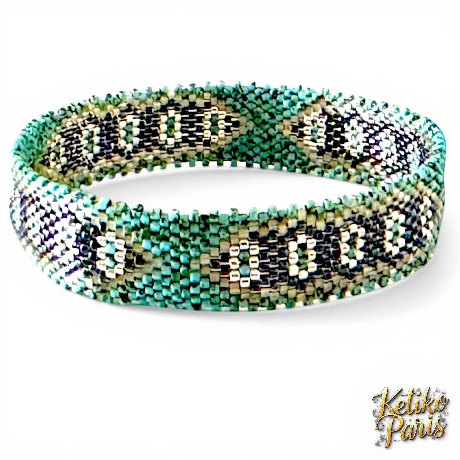 Depending on the model, I can also offer the regular peyote weaving that I call vertical peyote to distinguish it clearly, and also a loom version.