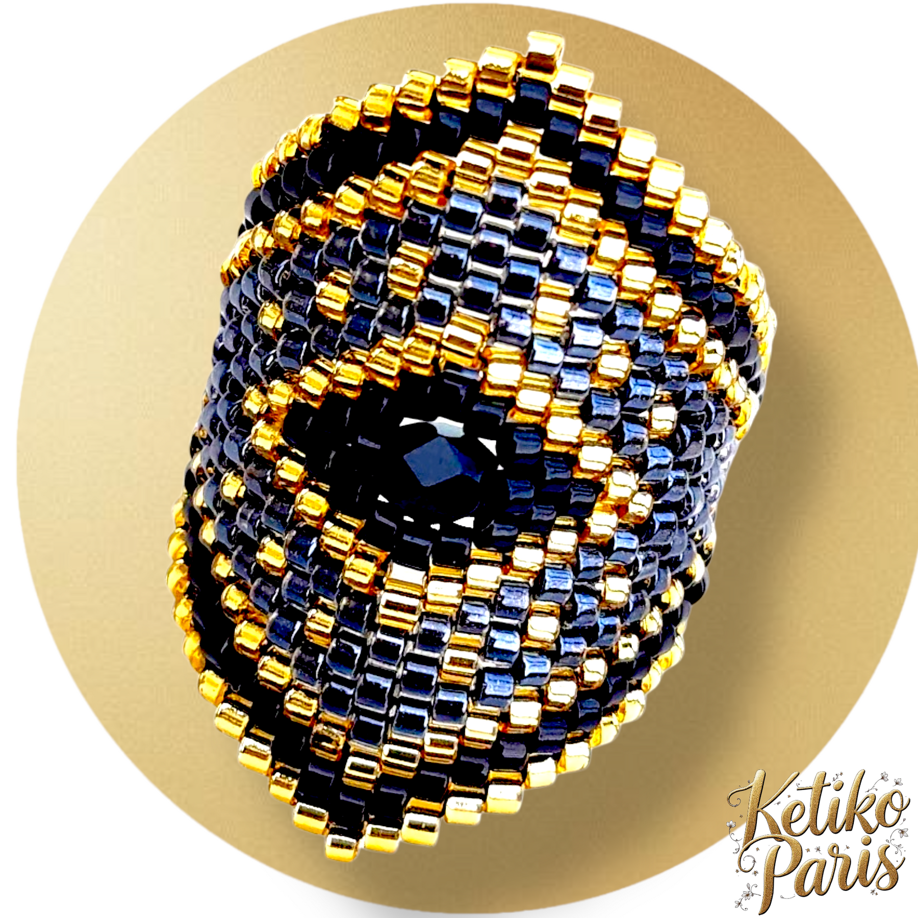 The rings are woven in peyote stitch. The ring is woven circularly then the rest of the ring is woven linearly for pointed models.