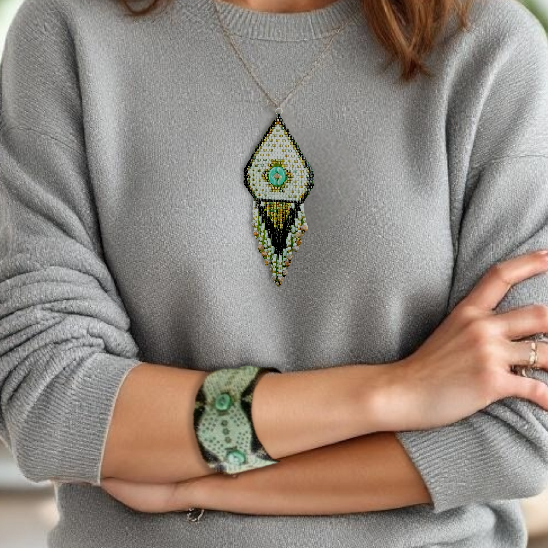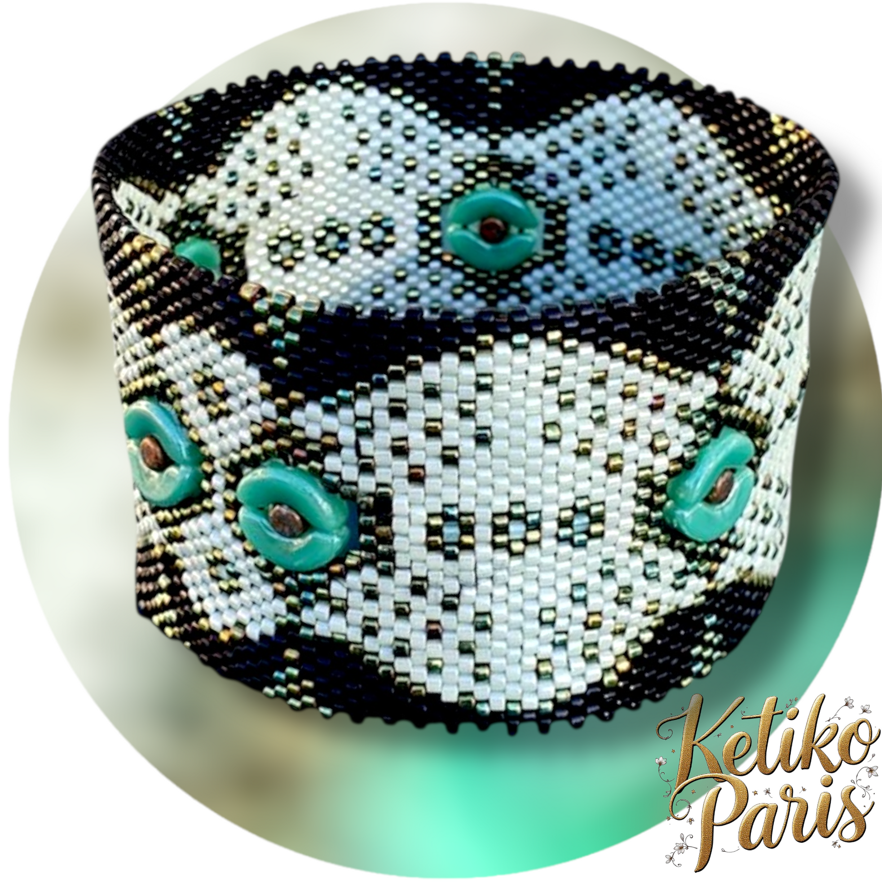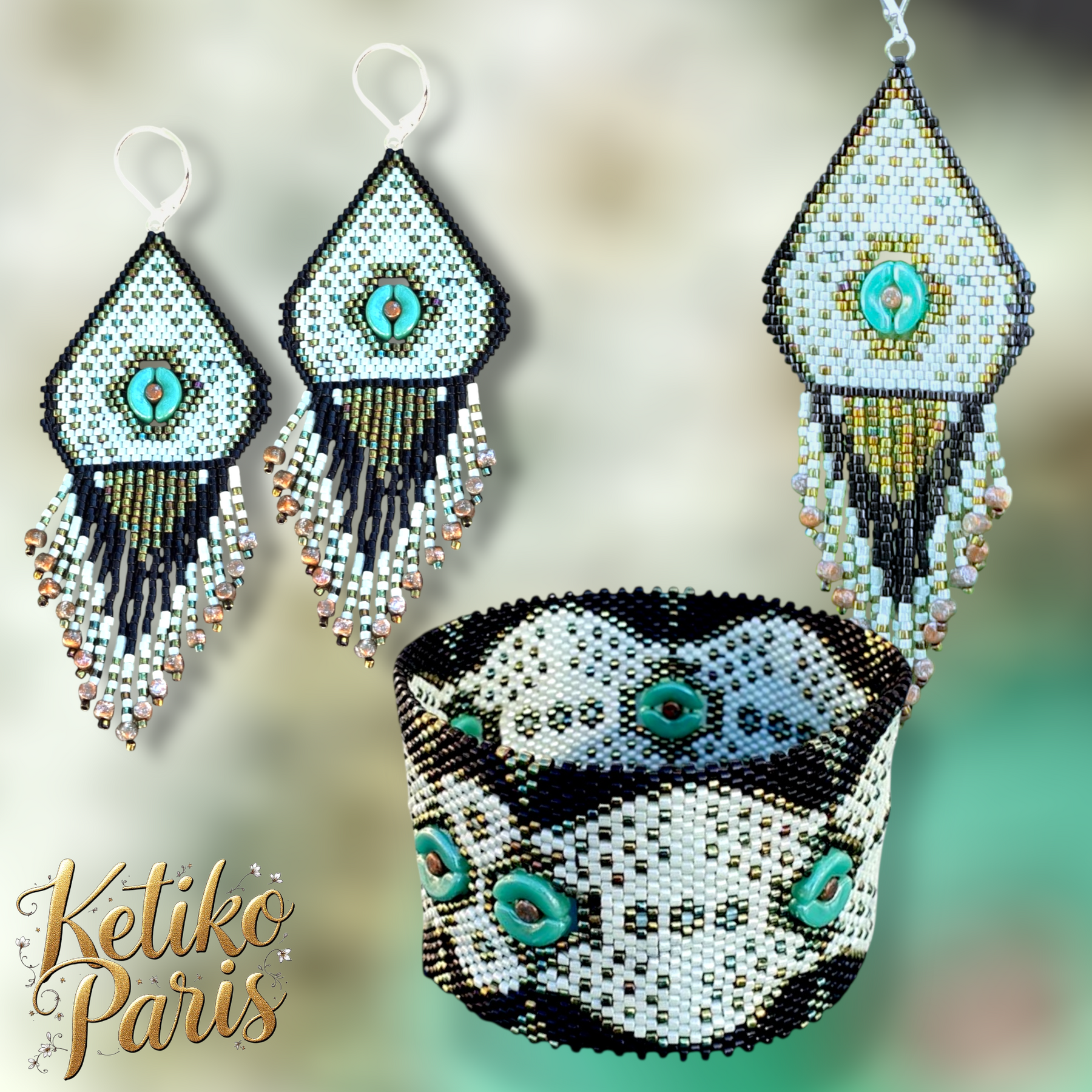Depending on the model, I can also offer the regular peyote weaving that I call vertical peyote to distinguish it clearly, and also a loom version.
