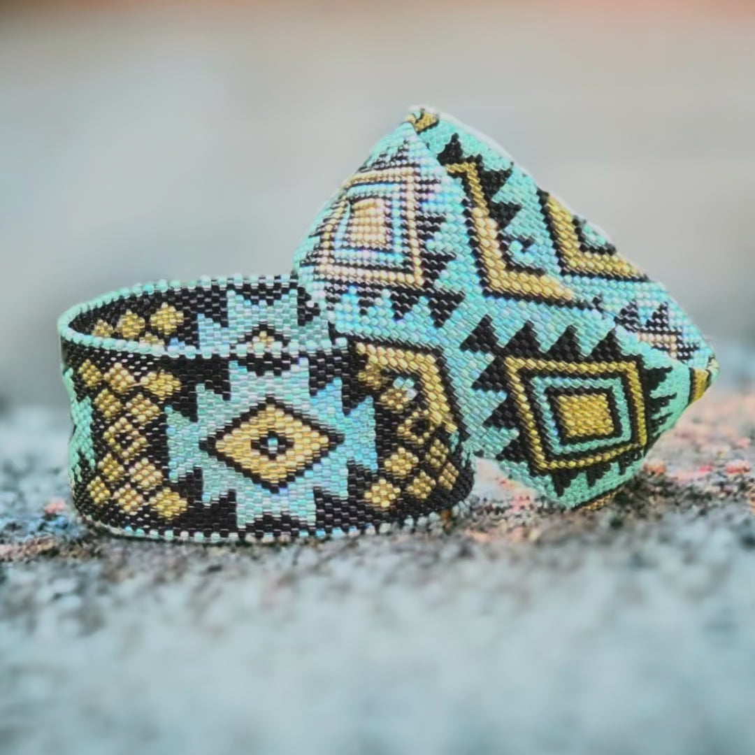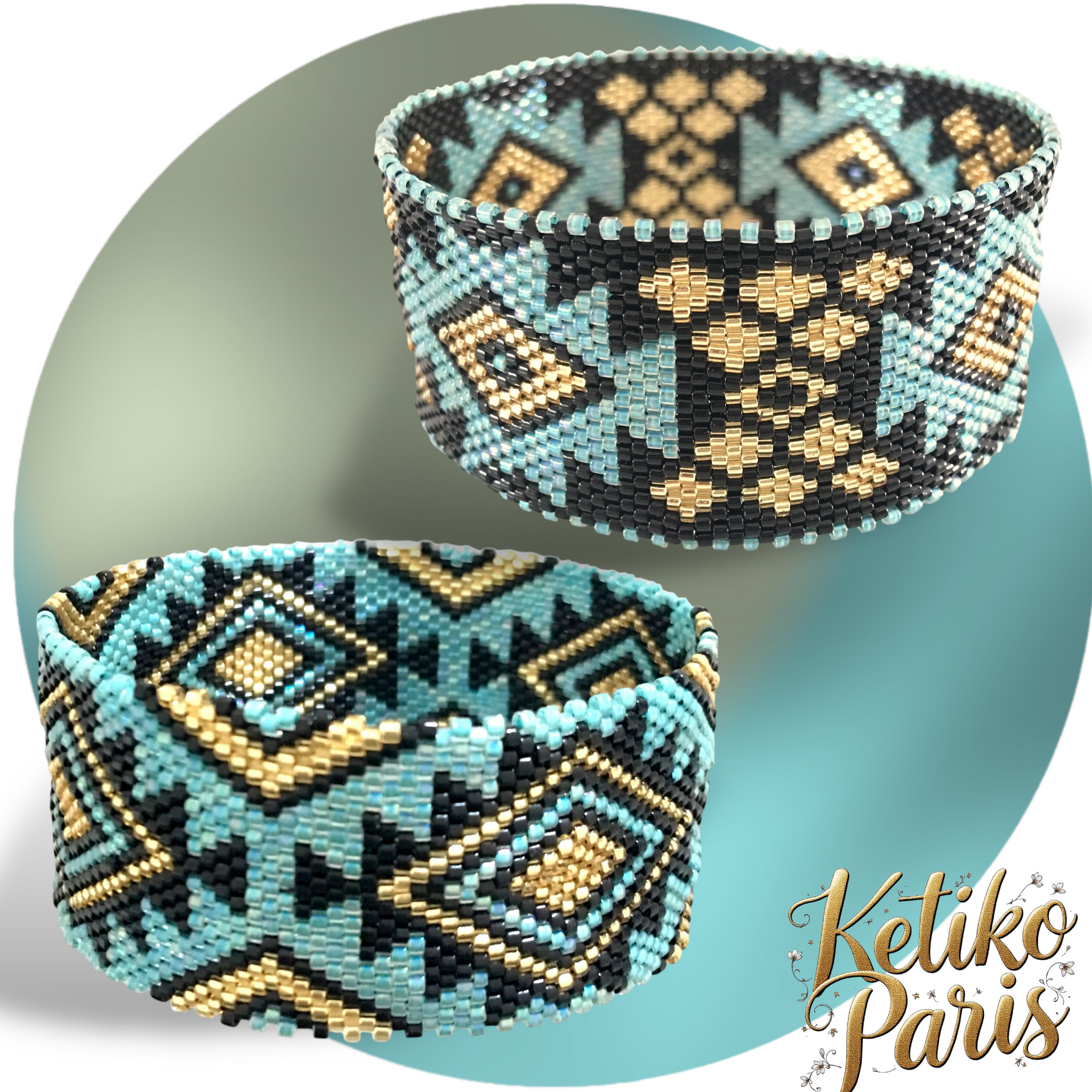 Depending on the model, I can also offer the regular peyote weaving that I call vertical peyote to distinguish it clearly, and also a loom version.