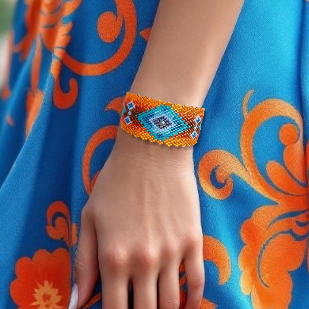 Diagram and explanations for making a bracelet, bangle or with clasp with 11/0 miyuki delicas beads. Weaving in peyote, tubular (bangle) or linear (long rows). The bracelet can also be woven in brick stitch.