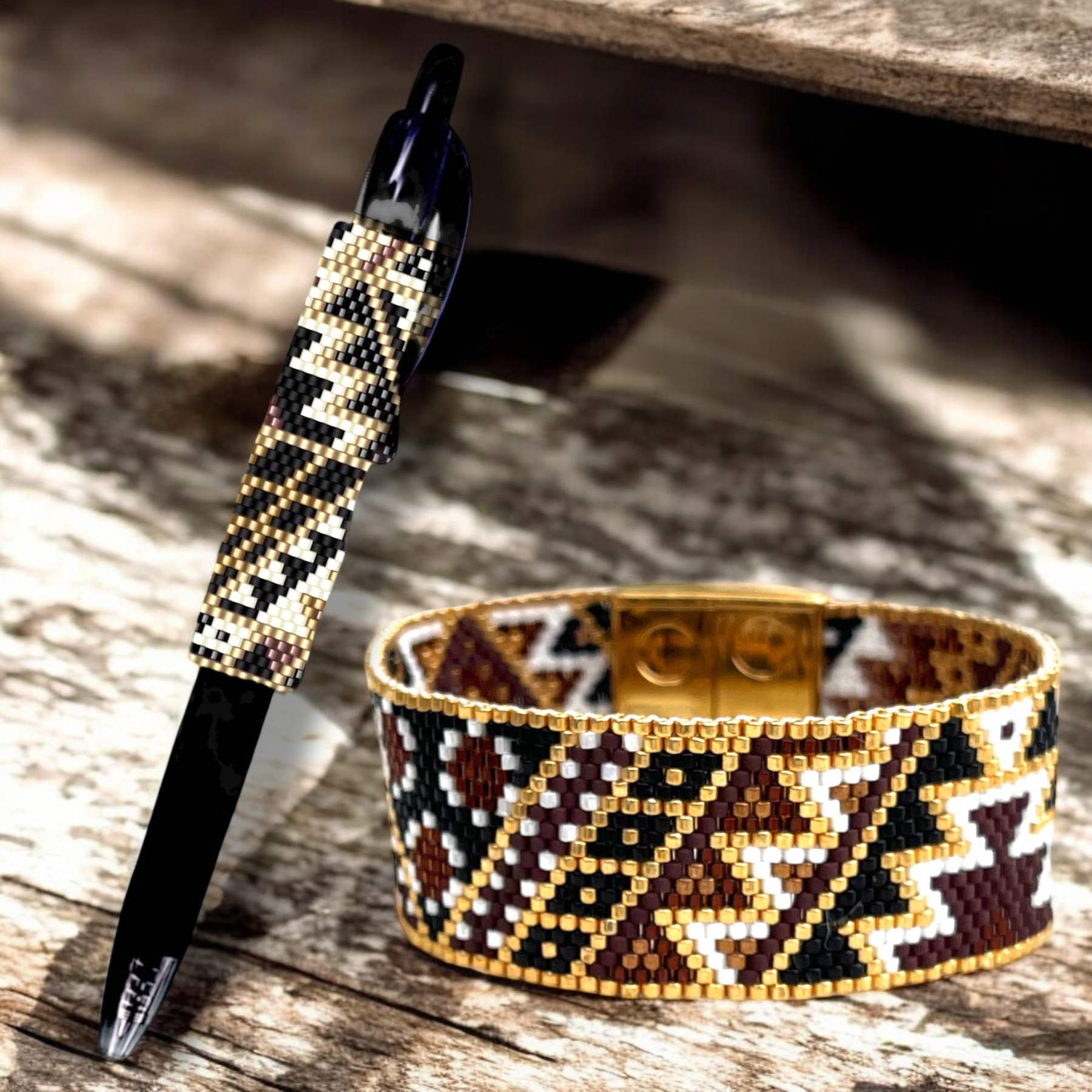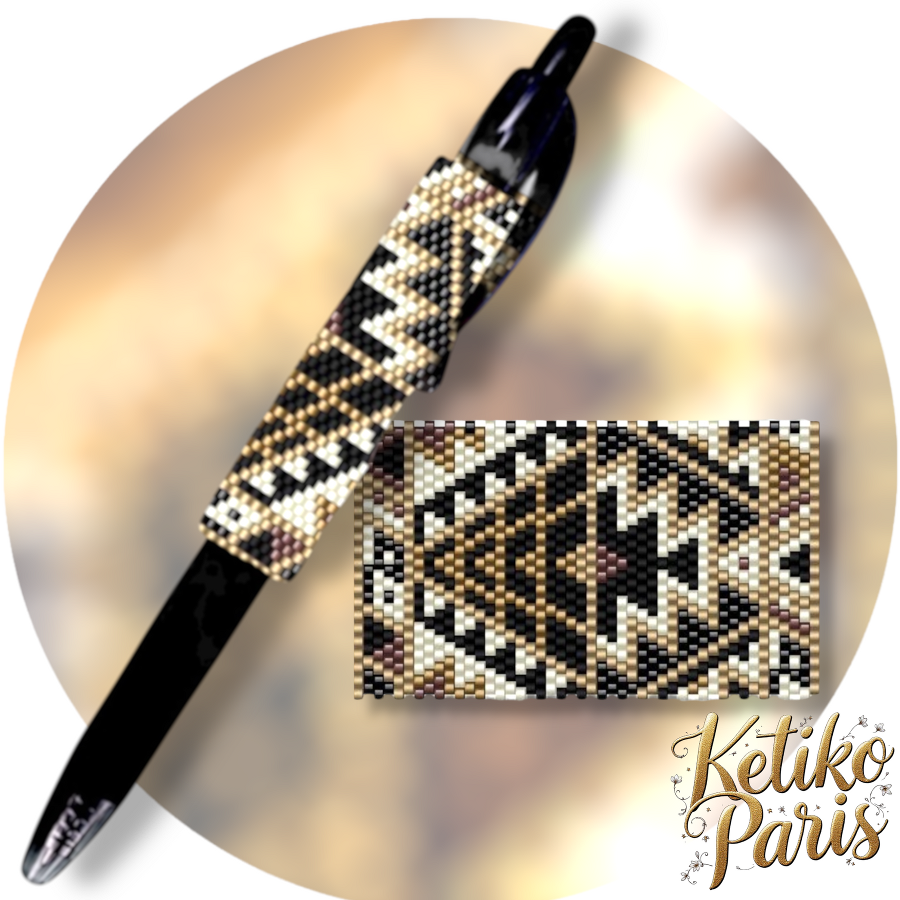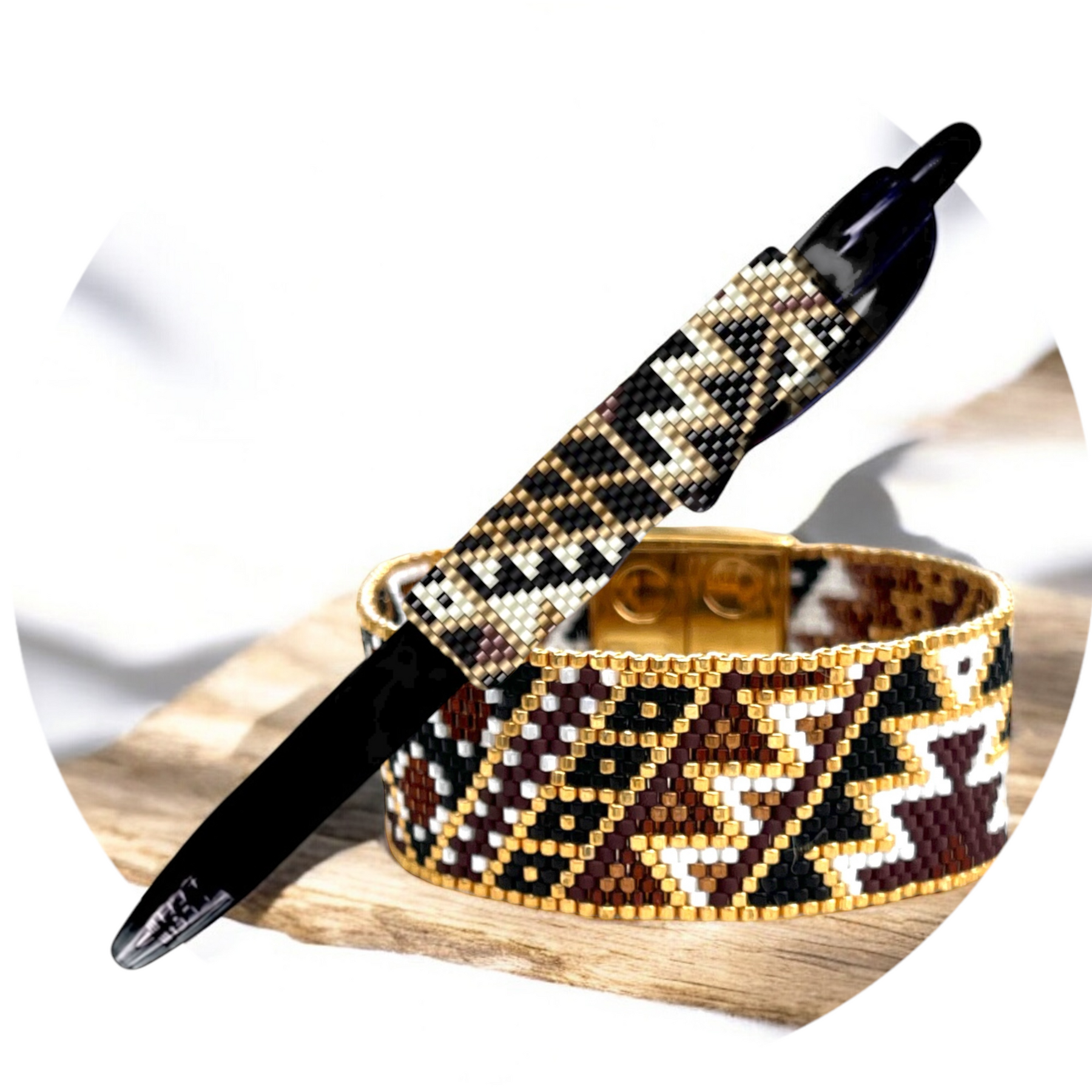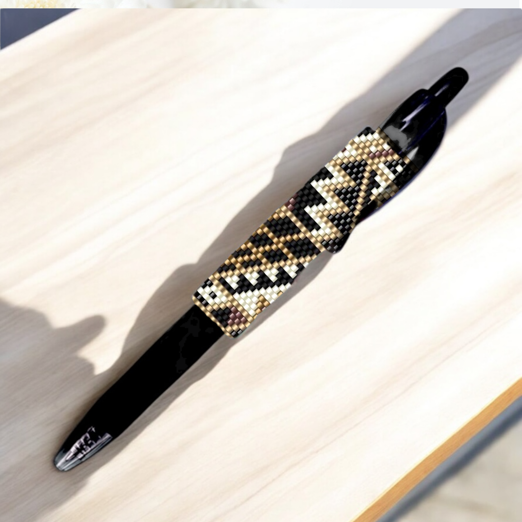 Even Count Peyote stitch pen cover pattern woven with miyuki delicas beads for G2 Pilot pen