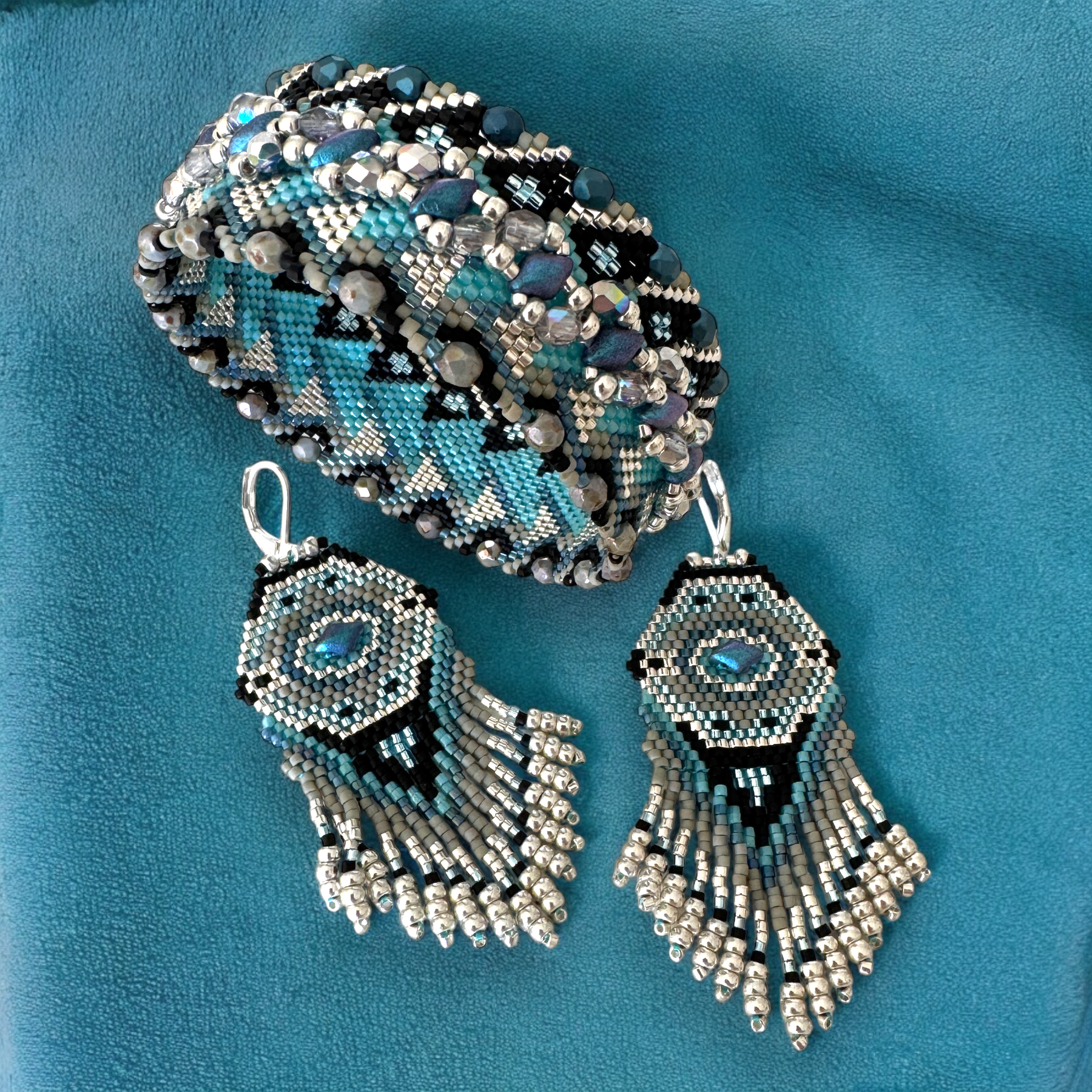 Depending on the model, I can also offer the regular peyote weaving that I call vertical peyote to distinguish it clearly, and also a loom version.