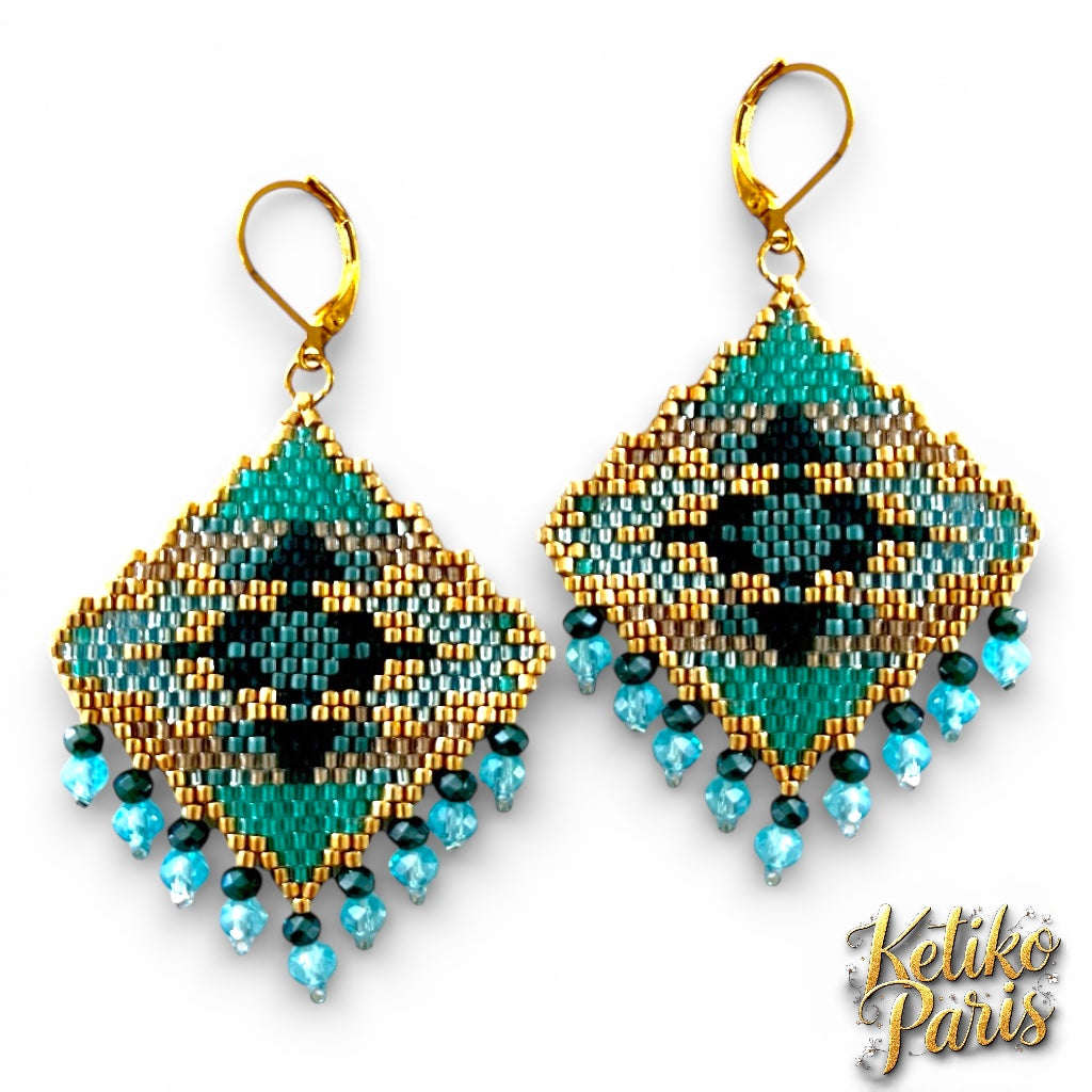 Peyote or brick stitch patterns and explanations for earings or Necklace woven with miyuki beads...