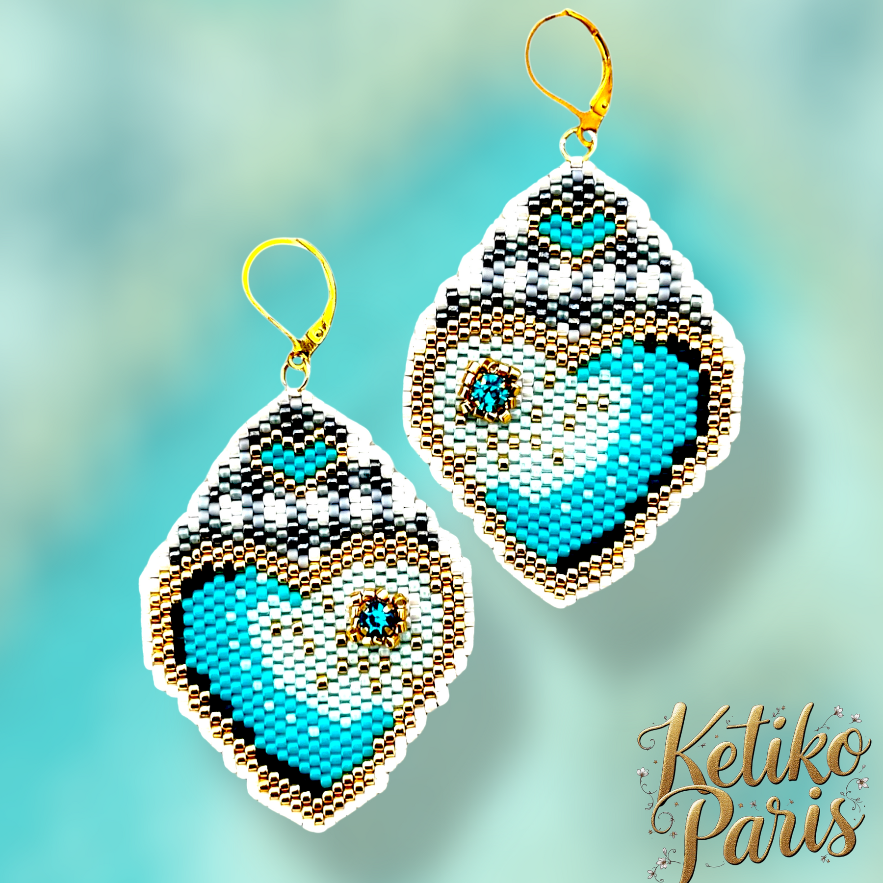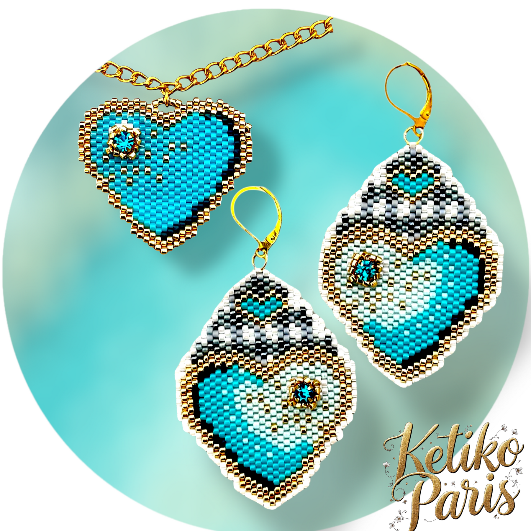 Peyote or brick stitch patterns and explanations for 2 pendants to wear as earings or Necklace woven with miyuki beads...
