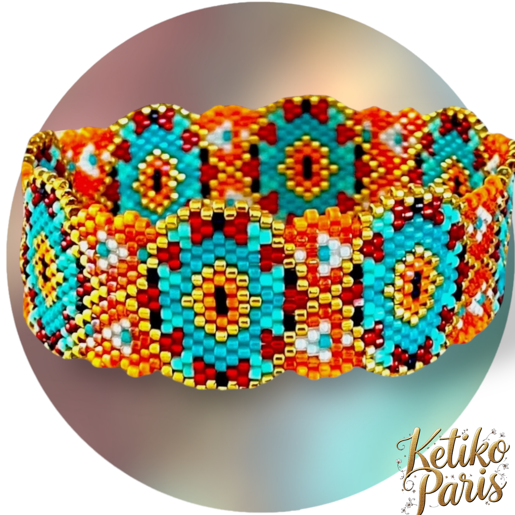 Depending on the model, I can also offer the regular peyote weaving that I call vertical peyote to distinguish it clearly, and also a loom version.