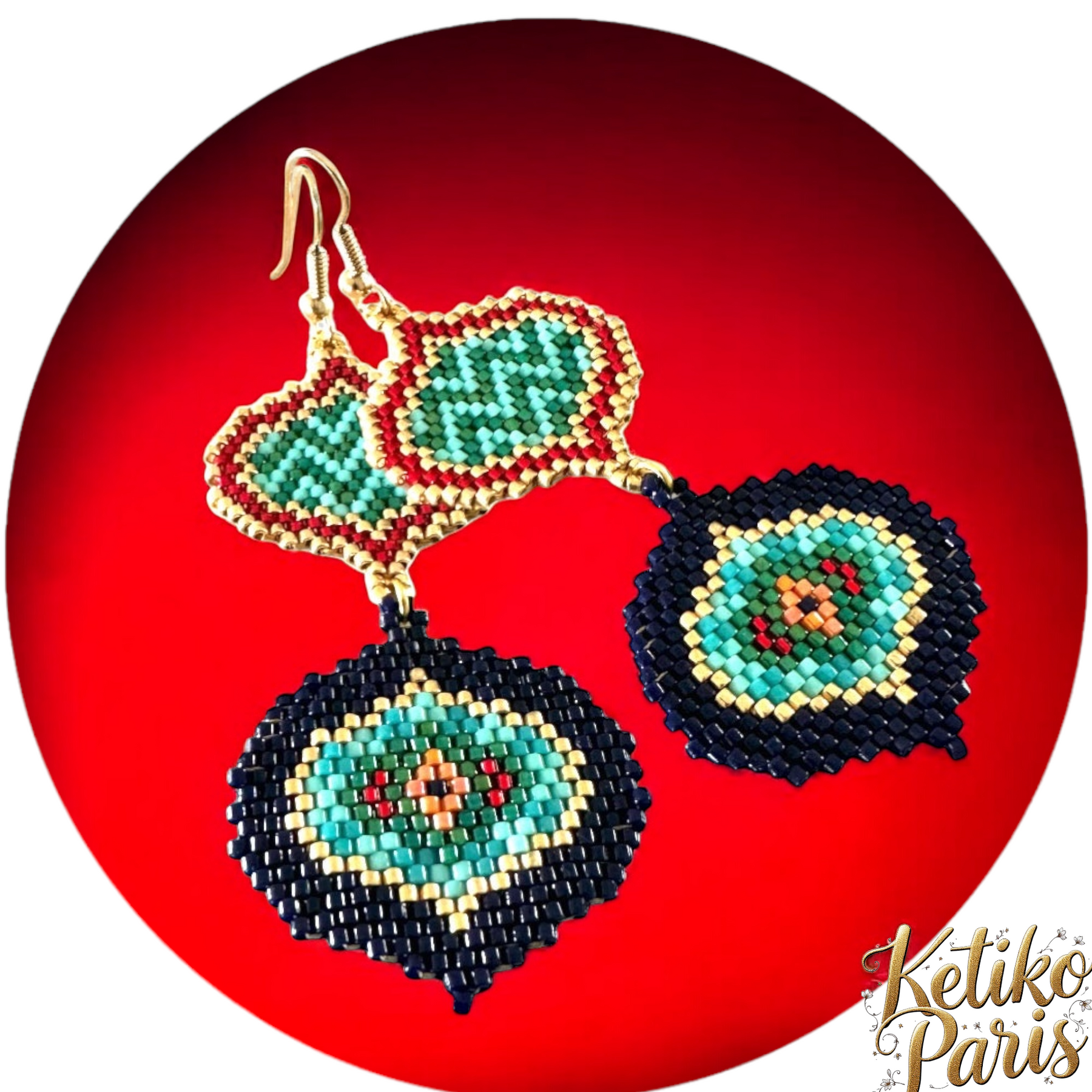 Peyote or brick stitch patterns and explanations for earings or Necklace woven with miyuki beads...