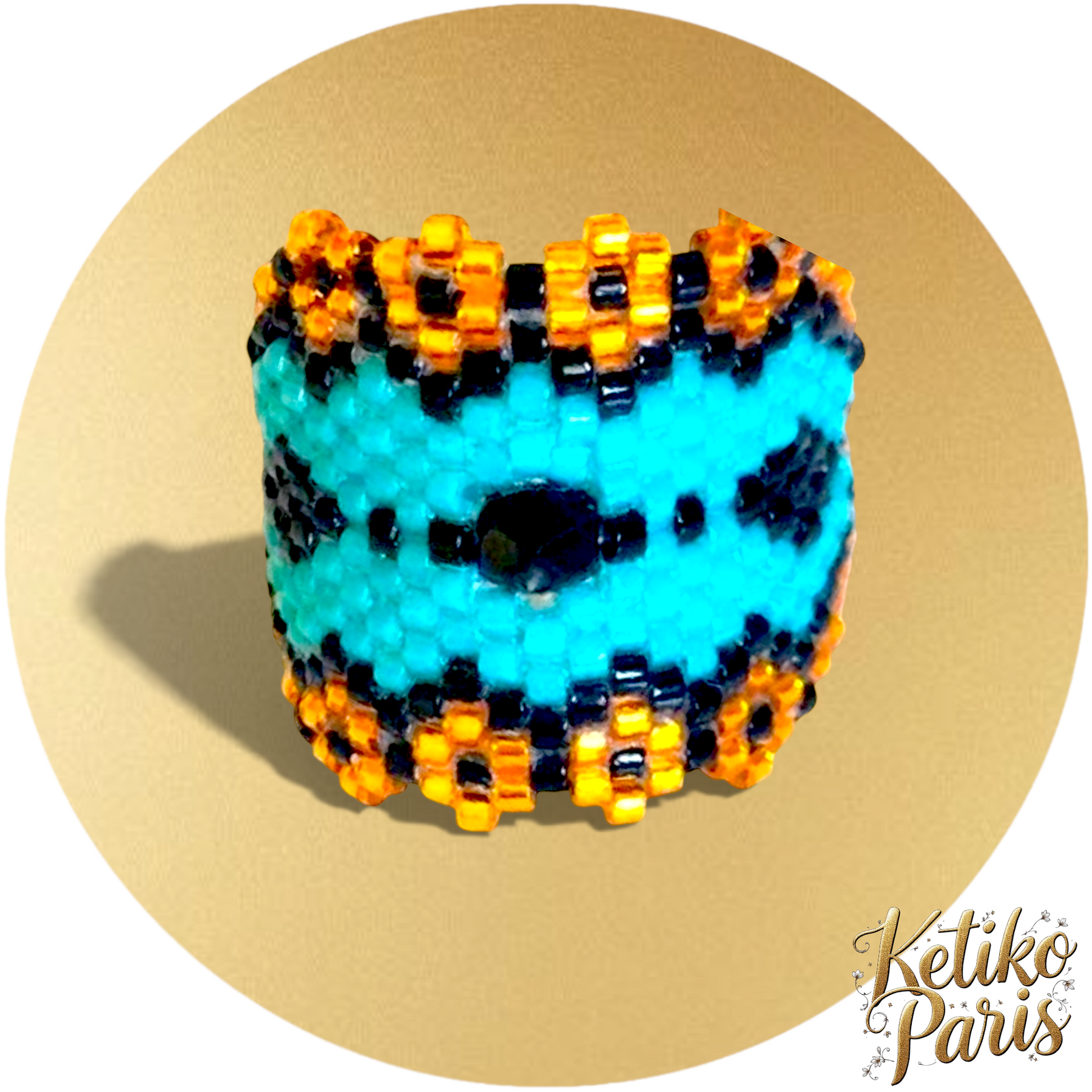 The rings are woven in peyote stitch. The ring is woven circularly then the rest of the ring is woven linearly for pointed models.
