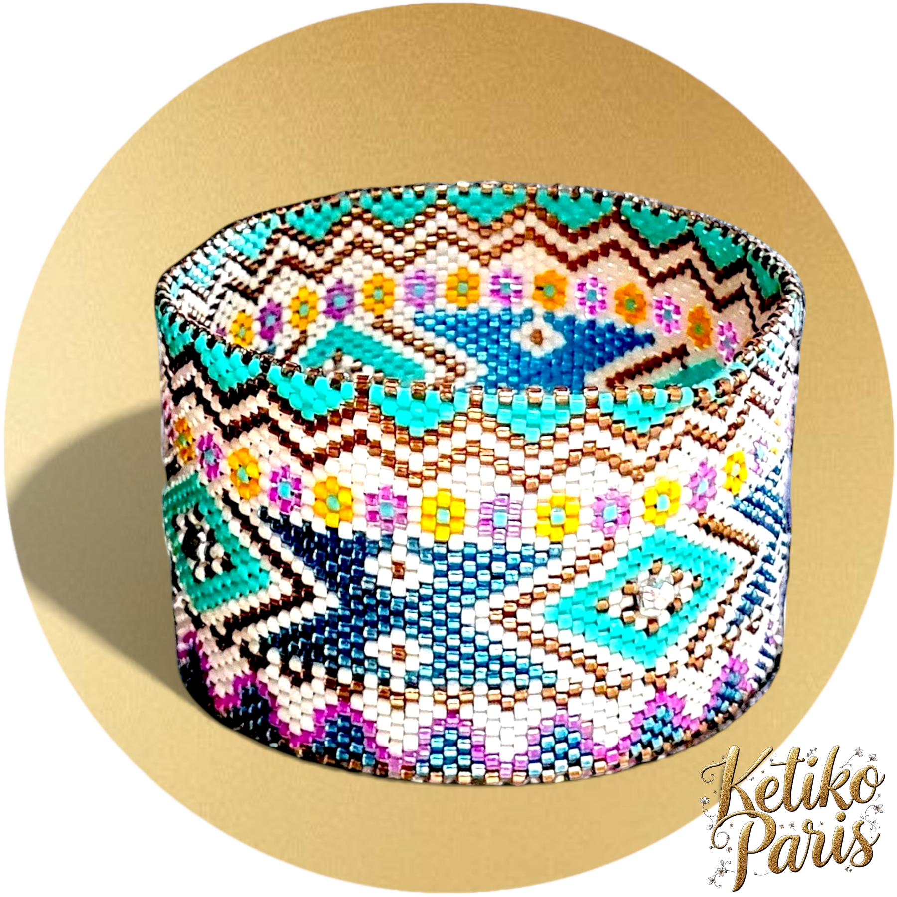 Depending on the model, I can also offer the regular peyote weaving that I call vertical peyote to distinguish it clearly, and also a loom version.