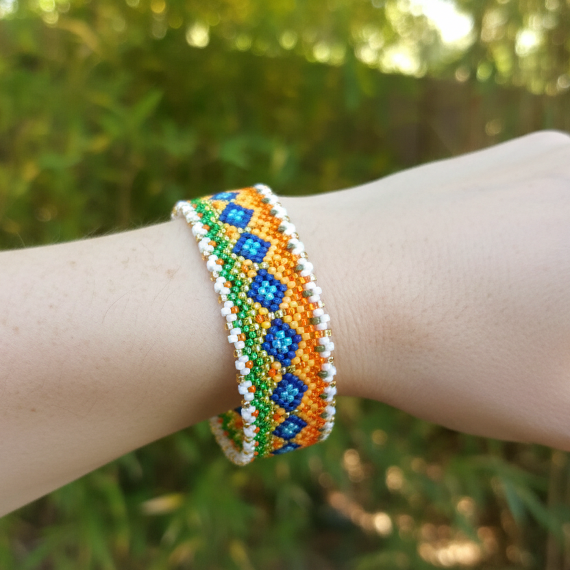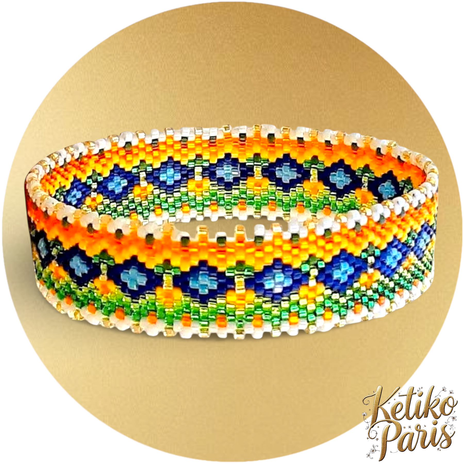 Depending on the model, I can also offer the regular peyote weaving that I call vertical peyote to distinguish it clearly, and also a loom version.