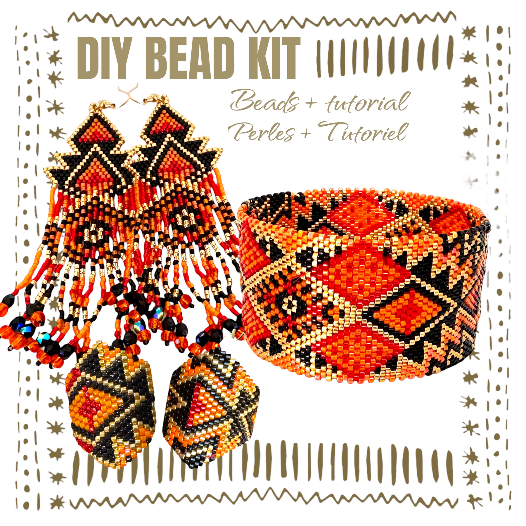 Beads, Patterns and explanations for making a bracelet and/or earrings
