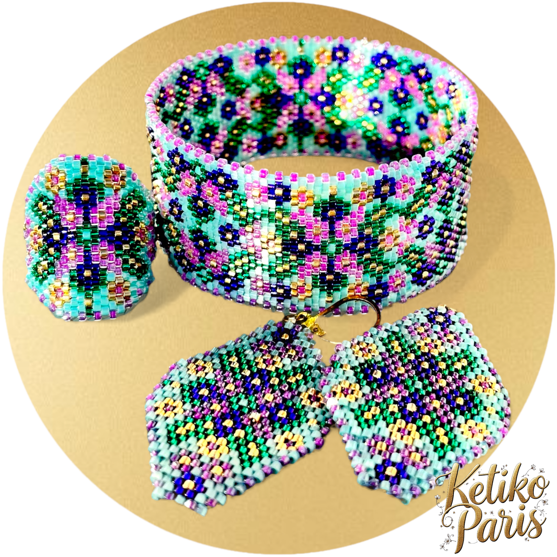 Depending on the model, I can also offer the regular peyote weaving that I call vertical peyote to distinguish it clearly, and also a loom version.