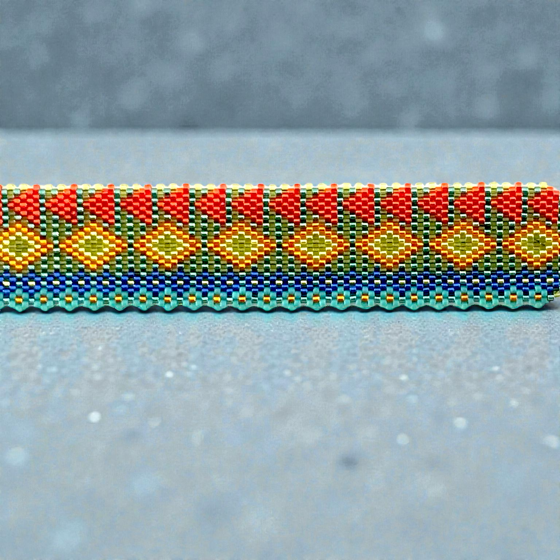 Depending on the model, I can also offer the regular peyote weaving that I call vertical peyote to distinguish it clearly, and also a loom version.