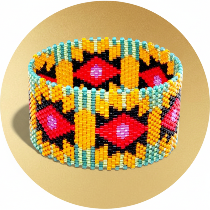 Depending on the model, I can also offer the regular peyote weaving that I call vertical peyote to distinguish it clearly, and also a loom version.