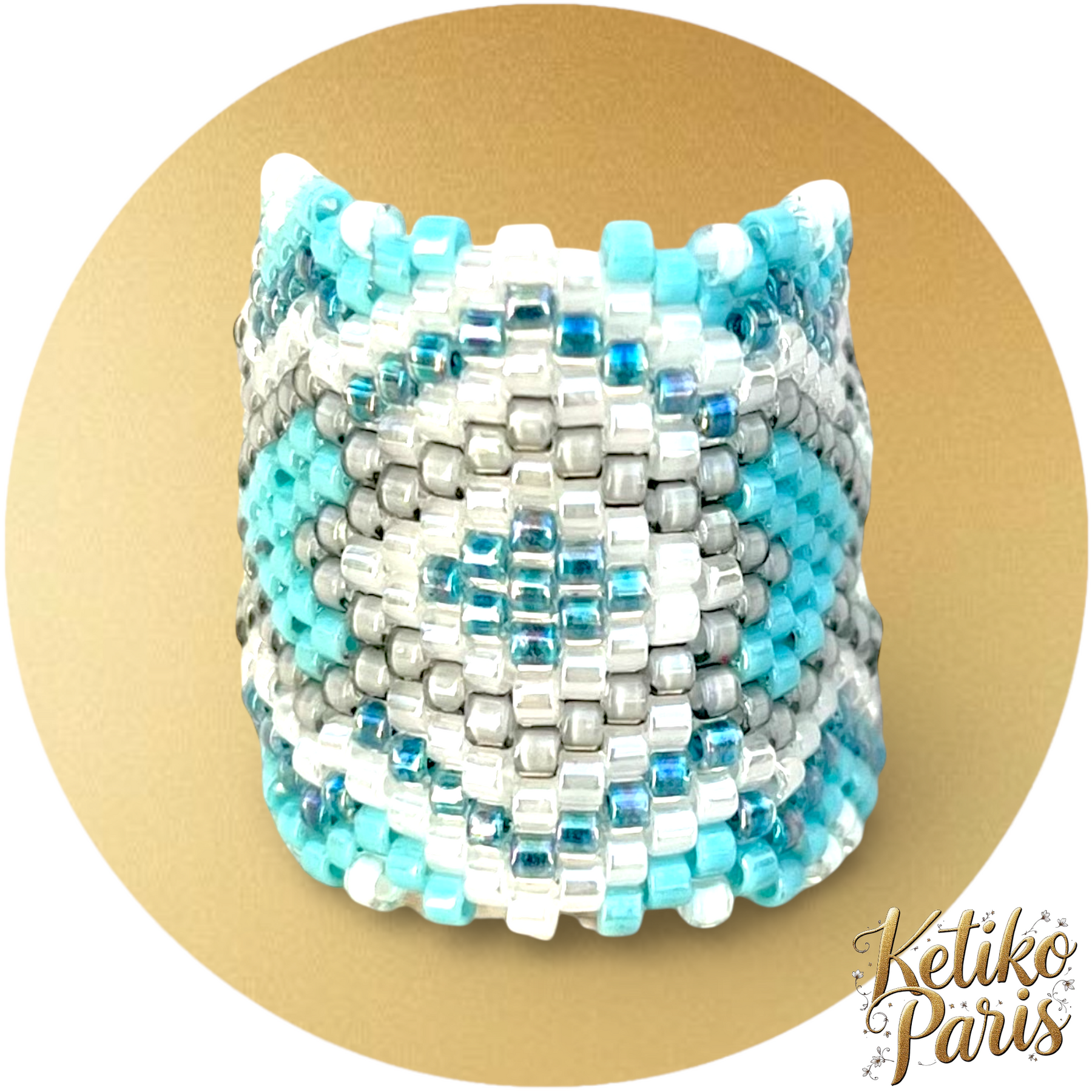 Pattern and explanations for making a ring woven in circular even count peyote or brick stitch with miyuki delicas beads.