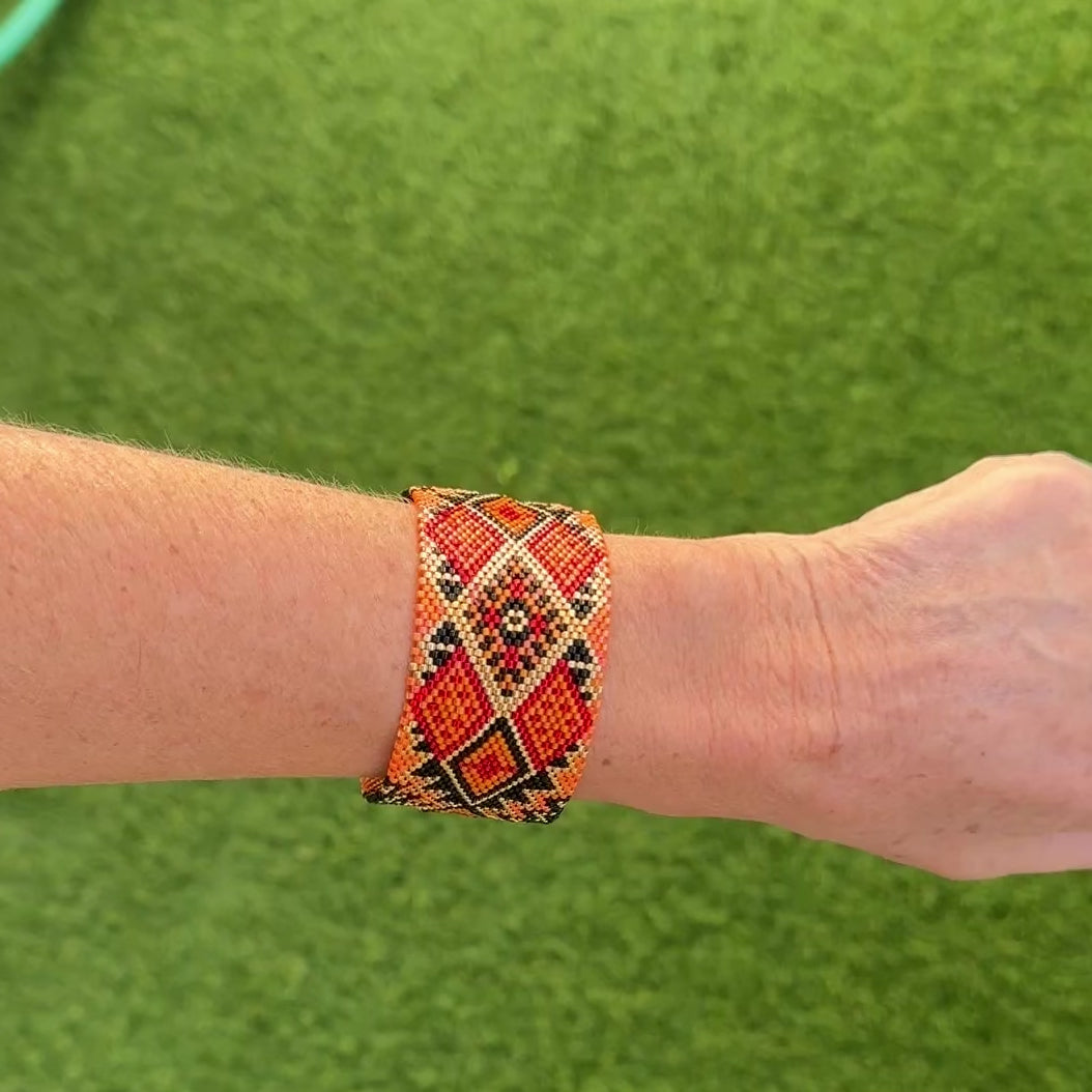 Depending on the model, I can also offer the regular peyote weaving that I call vertical peyote to distinguish it clearly, and also a loom version.
