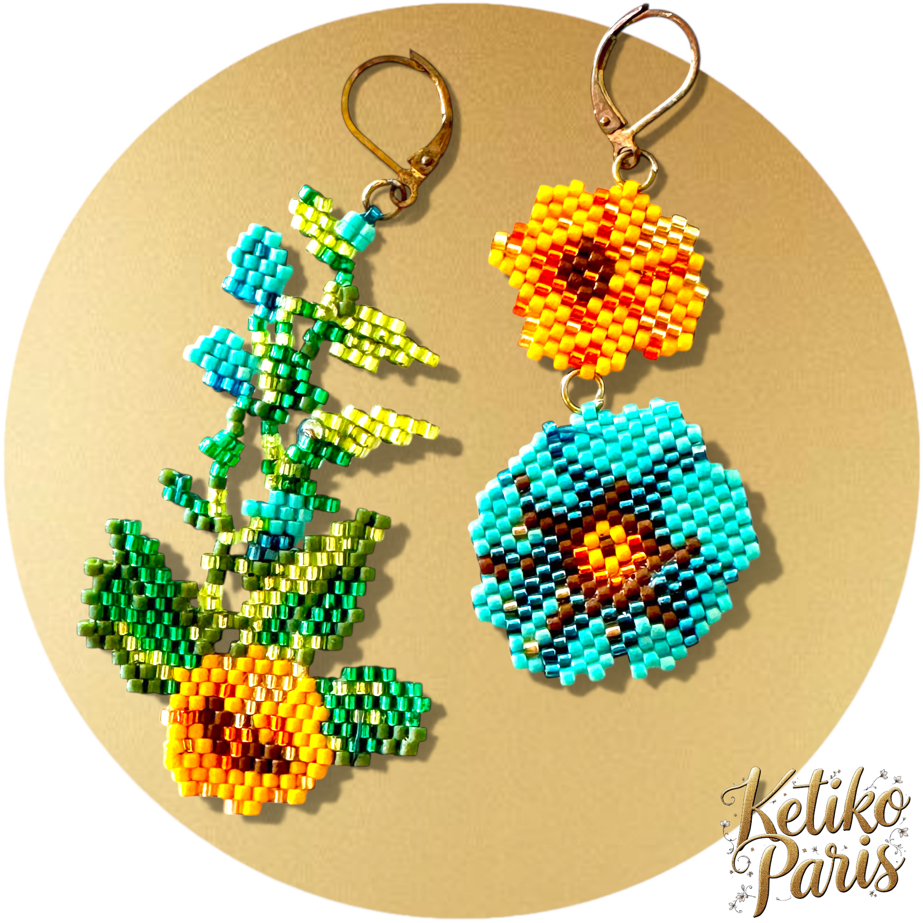 Schéma brick stitch pour boucles d'oreilles à porter asymétriques ou pour faire 2 paires différentes