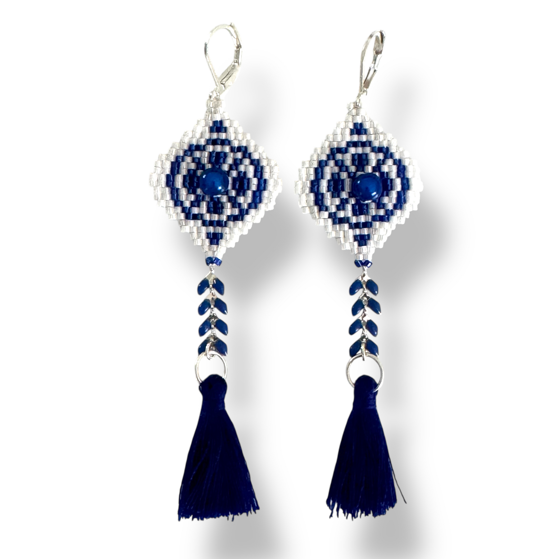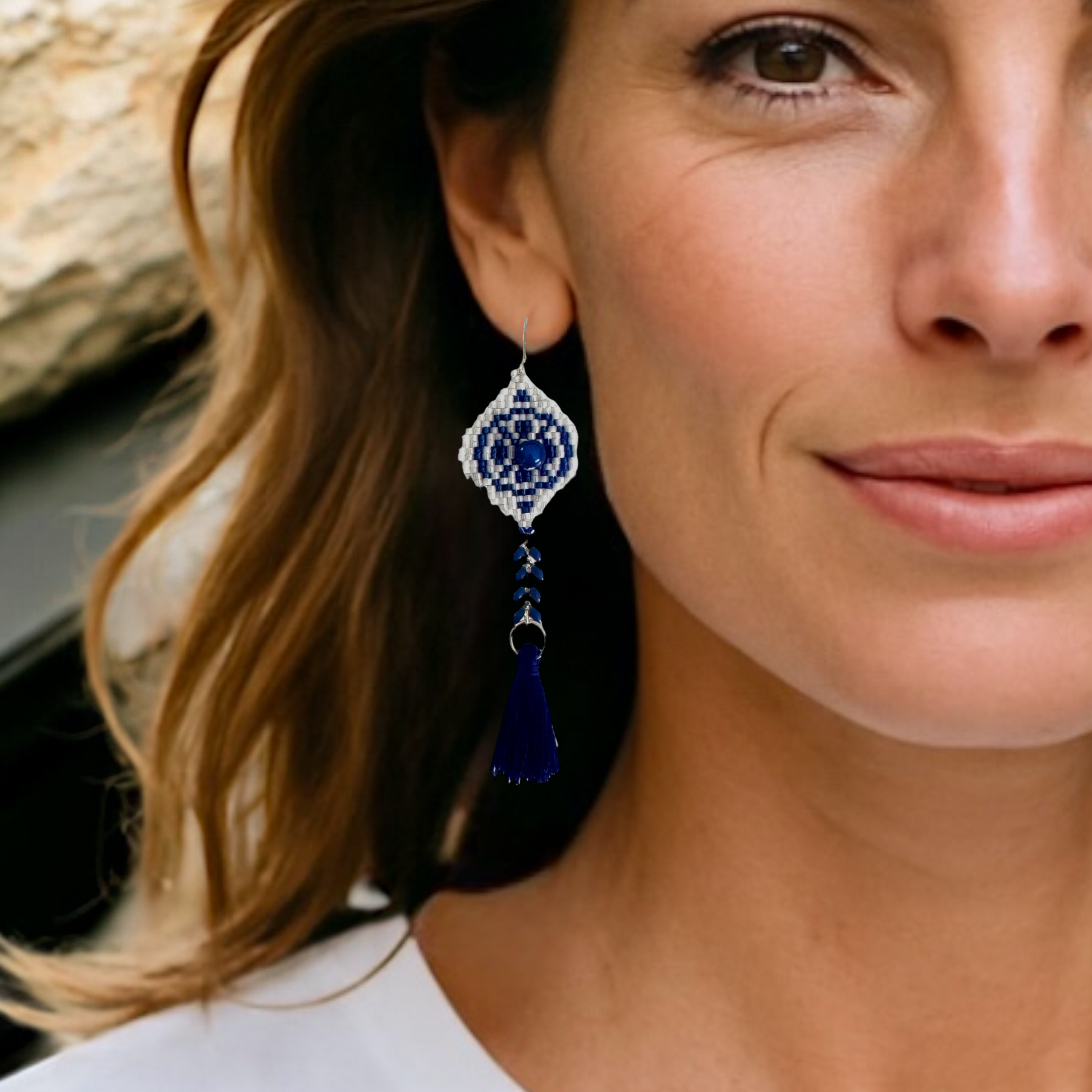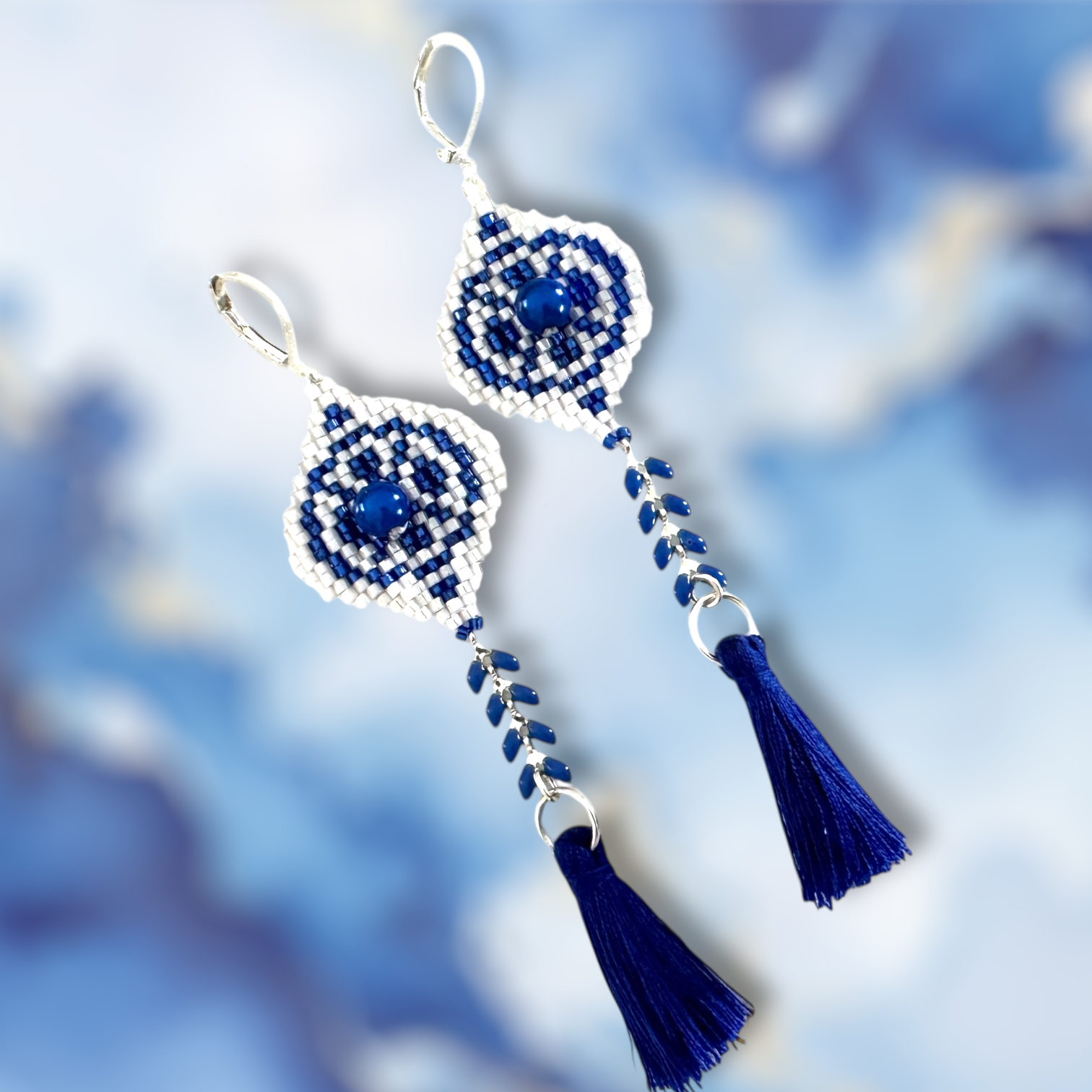2-drop peyote patterns and explanations for earings woven with miyuki beads...