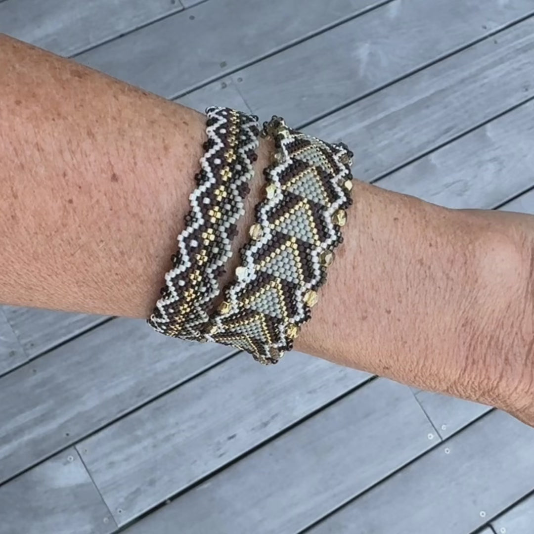 Depending on the model, I can also offer the regular peyote weaving that I call vertical peyote to distinguish it clearly, and also a loom version.
