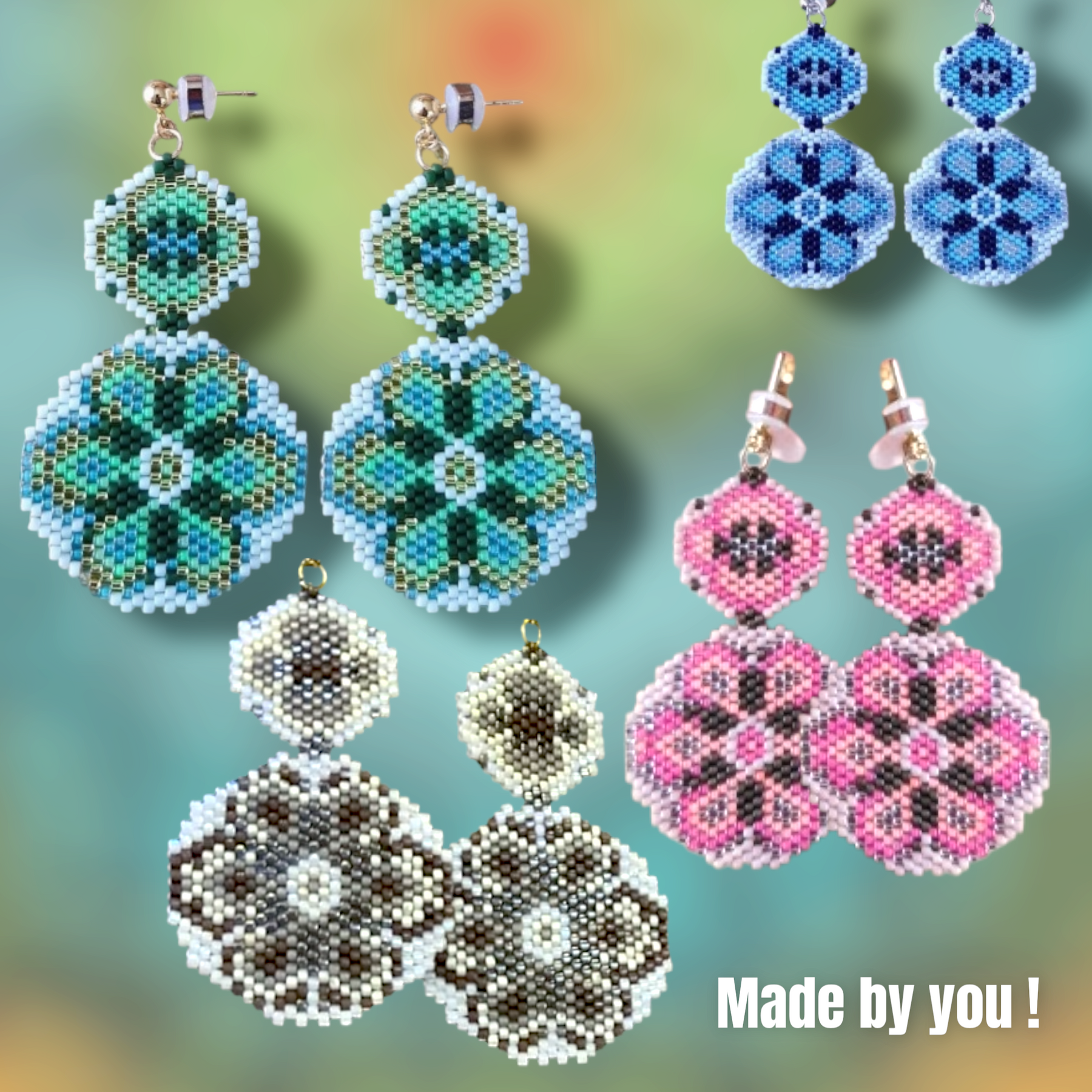 3 Peyote or brick stitch patterns and explanations for earings and Necklace woven with miyuki beads...