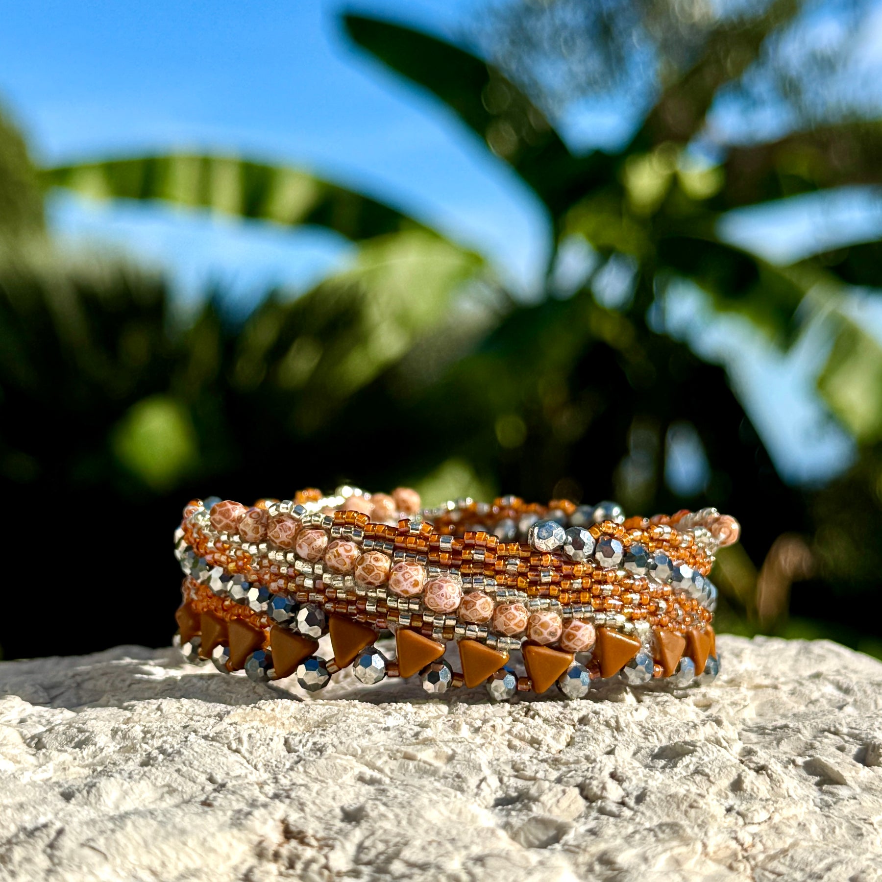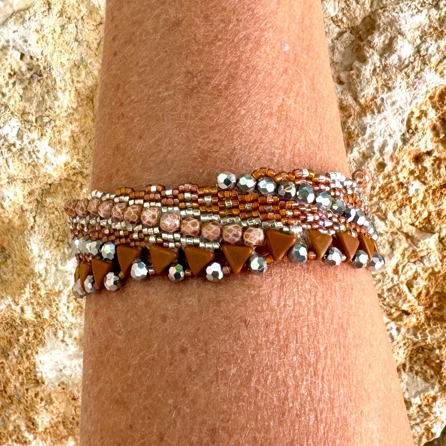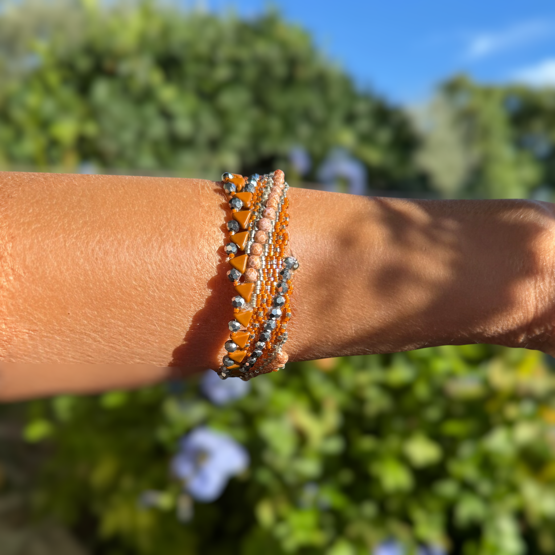 Mes basiques  : bangle et tissage horizontal comprends le modèle lineaire et un bangle taille M et parfois L. Les autres tailles sont fournies sur demandes si elles ne sont pas encore en ligne. Vous pouvez me demander plusieurs tailles.