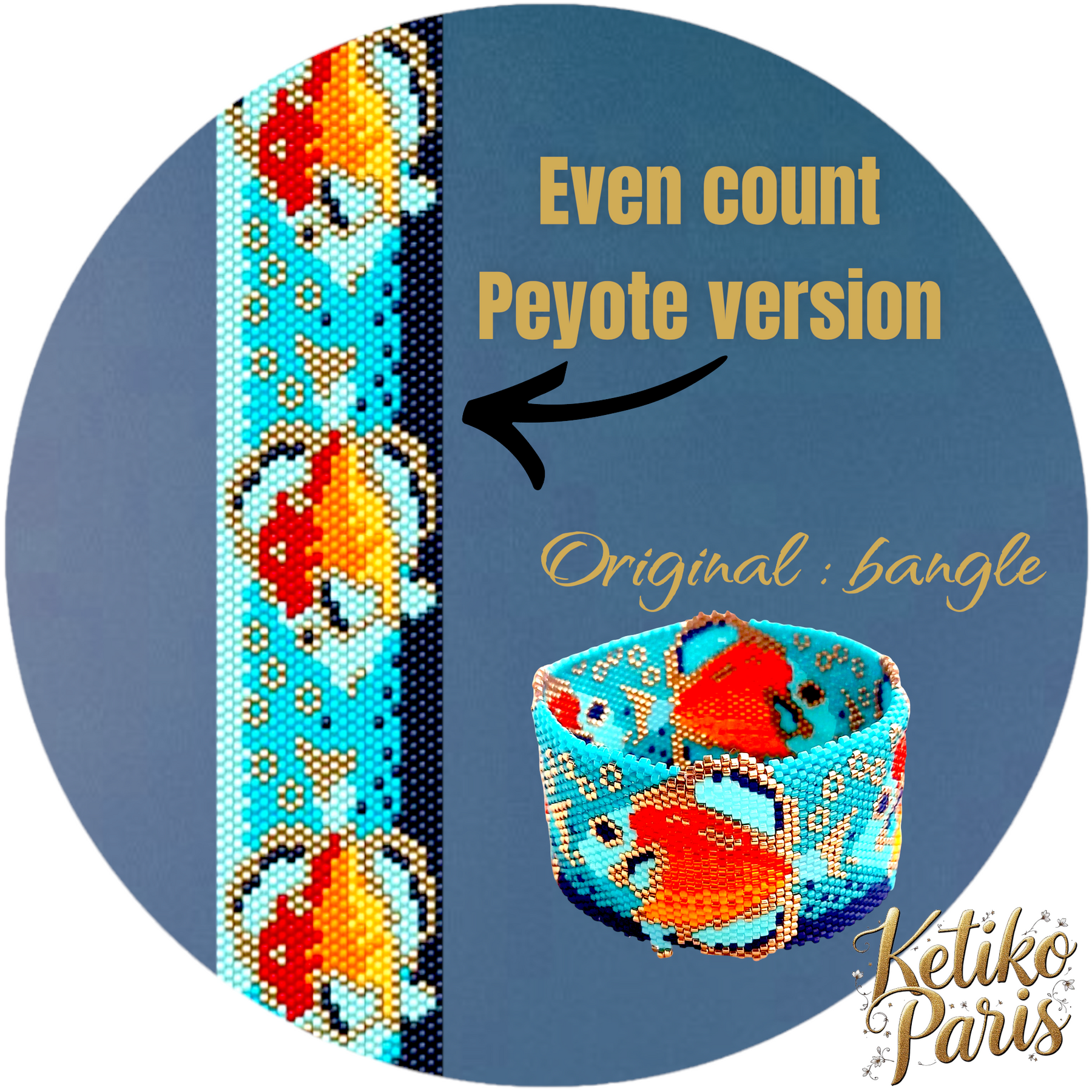 Pour les versions crées à partir du bangle, j'essaye de rester aussi proche que possible de l'original, mais il y a forcément des différences étant donné que les perles ne sont pas symétriques. Les couleurs utilisées sont les mêmes.