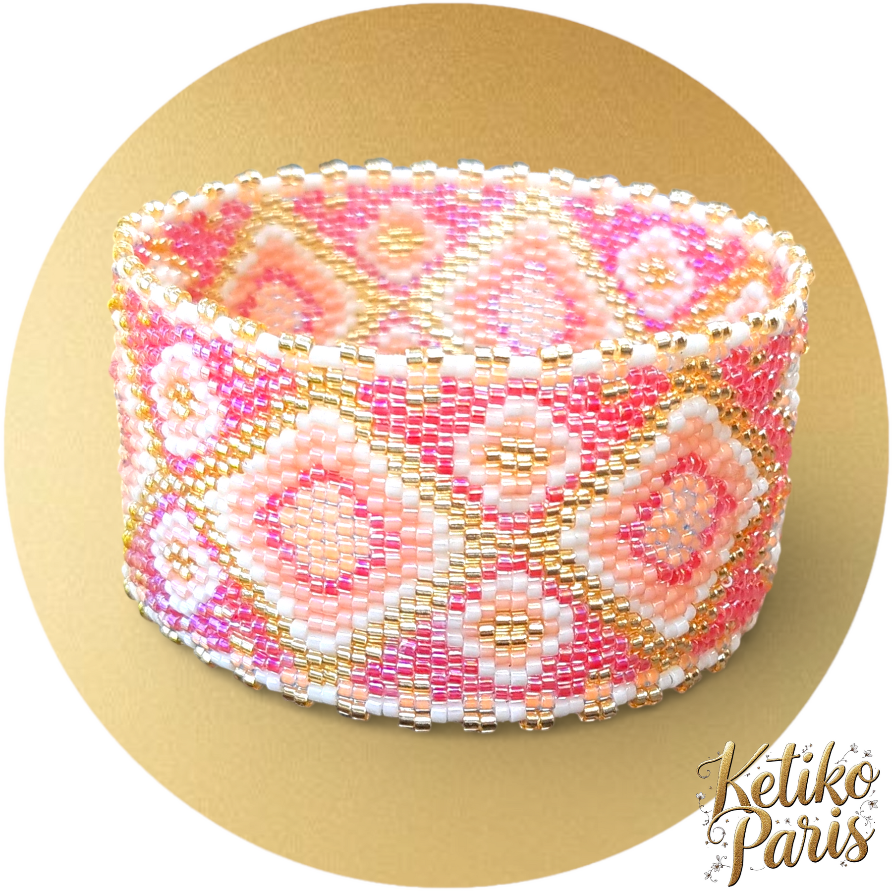 La quasi totalité de mes modèles de bracelets est tissée horizontalement.