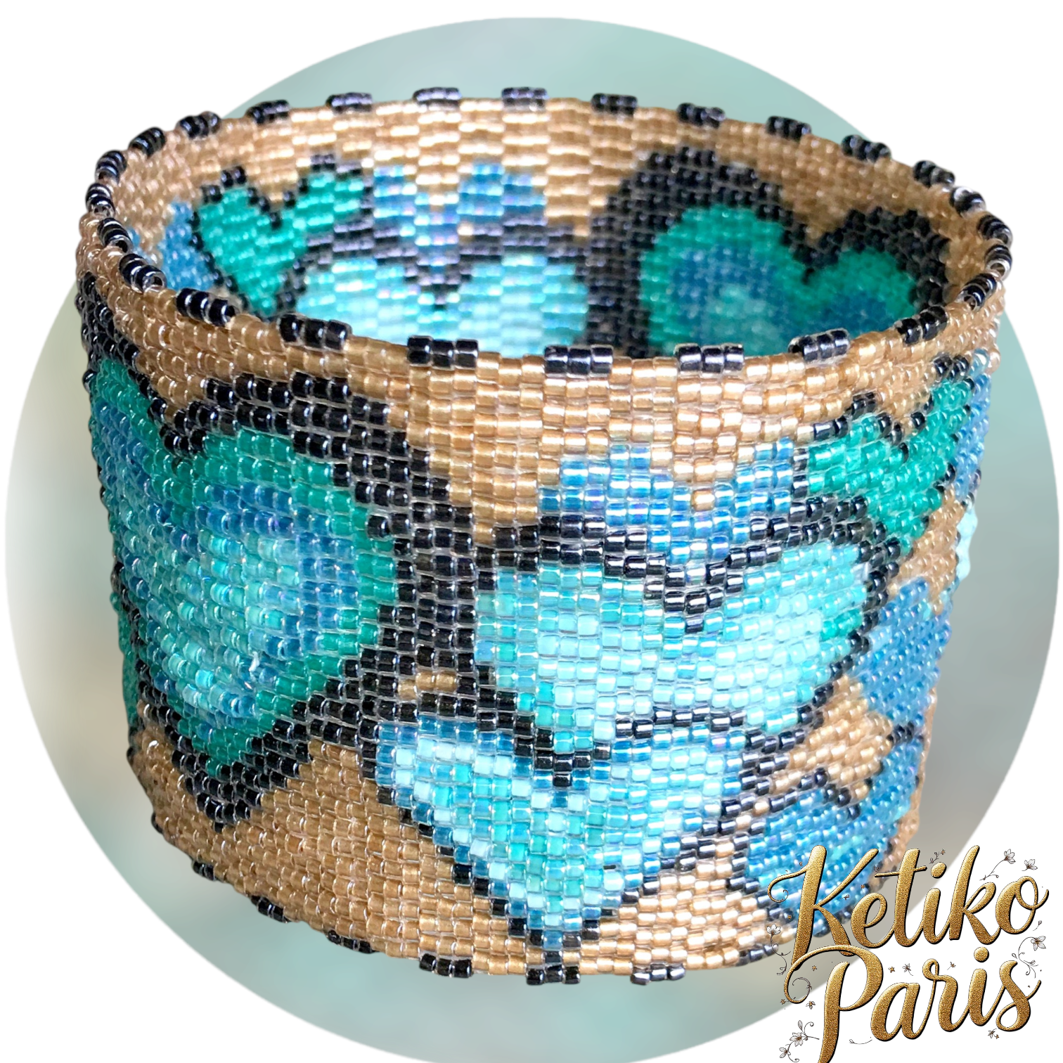 Schéma et explications pour réalisation d'un bracelet, Bangle ou avec fermoir en perles miyuki delicas 11/0. Tissage en peyote 3 perles pair circulaire (bangle) ou linaire (longs rangs). Le bracelet peut aussi être tissé en brick stitch.
