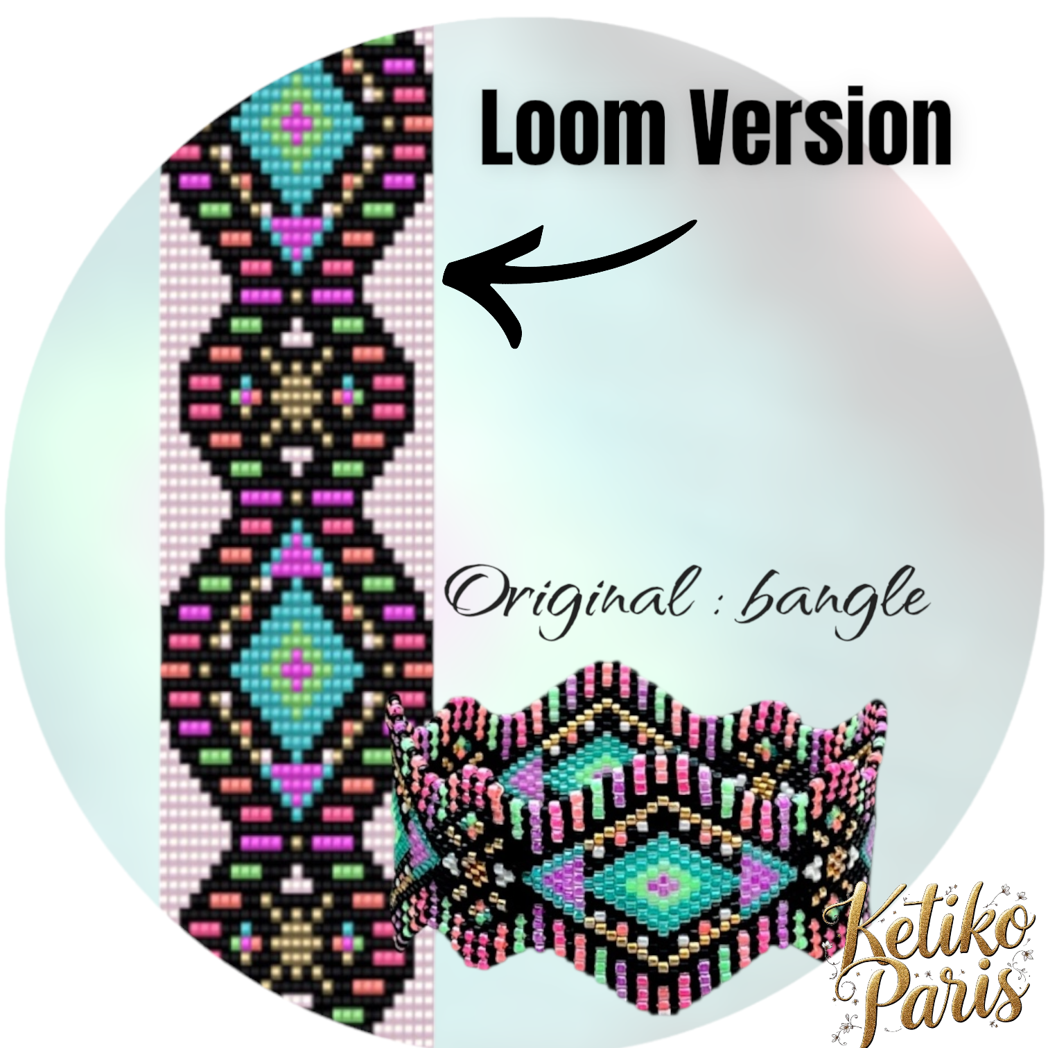Pour les versions crées à partir du bangle, j'essaye de rester aussi proche que possible de l'original, mais il y a forcément des différences étant donné que les perles ne sont pas symétriques. Les couleurs utilisées sont les mêmes.
