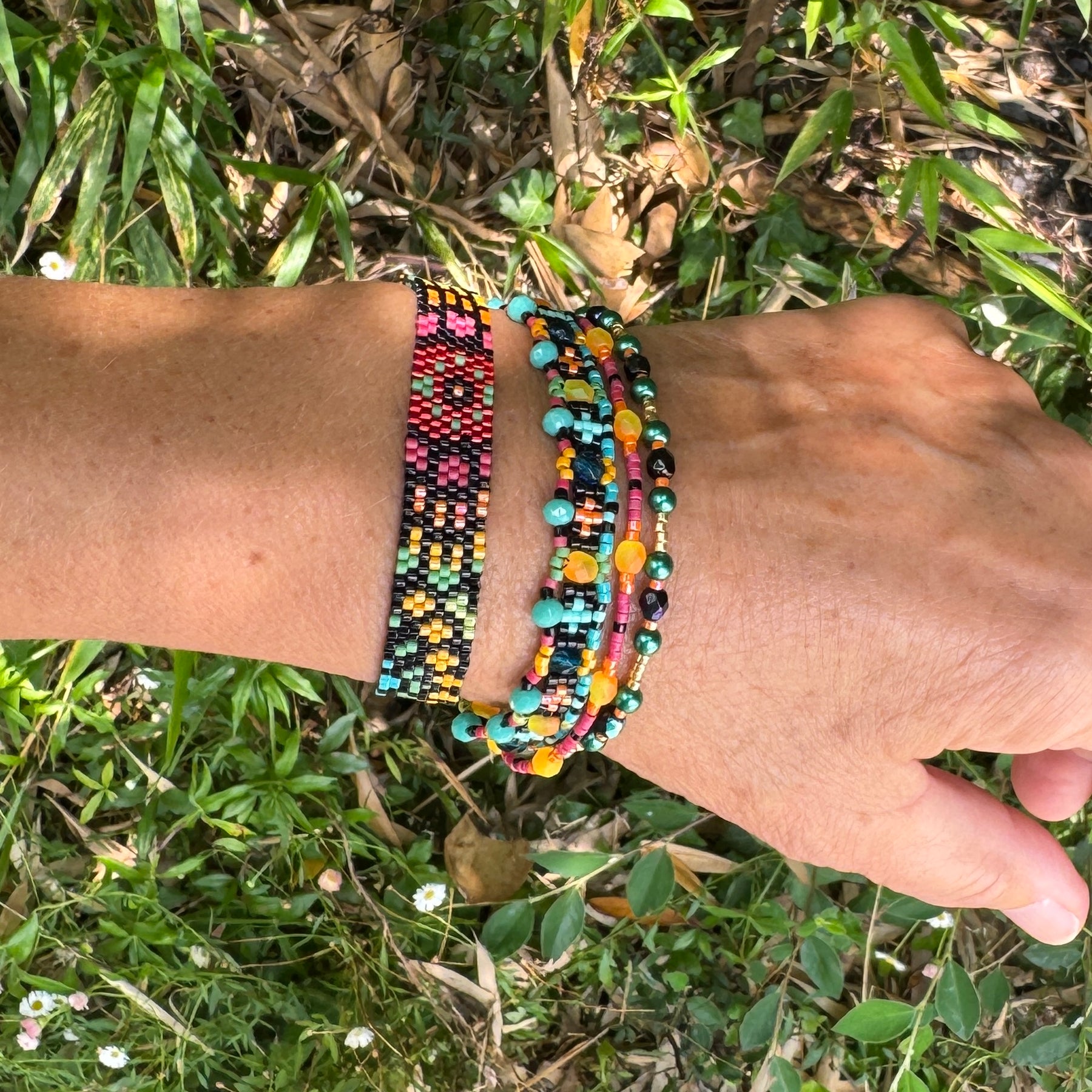 Mes basiques  : bangle et tissage horizontal comprends le modèle lineaire et un bangle taille M et parfois L. Les autres tailles sont fournies sur demandes si elles ne sont pas encore en ligne. Vous pouvez me demander plusieurs tailles.