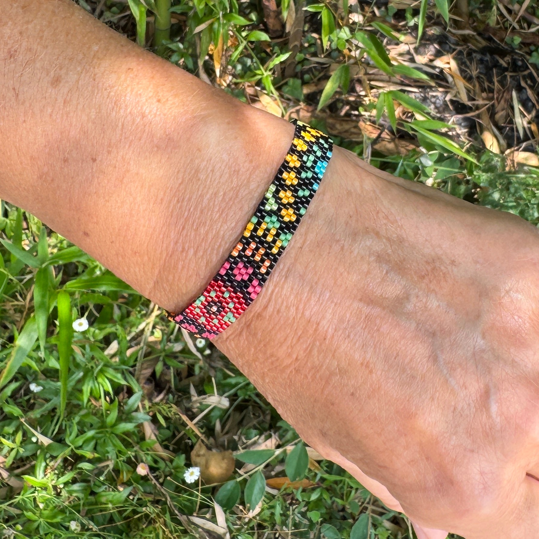 La quasi totalité de mes modèles de bracelets est tissée horizontalement.