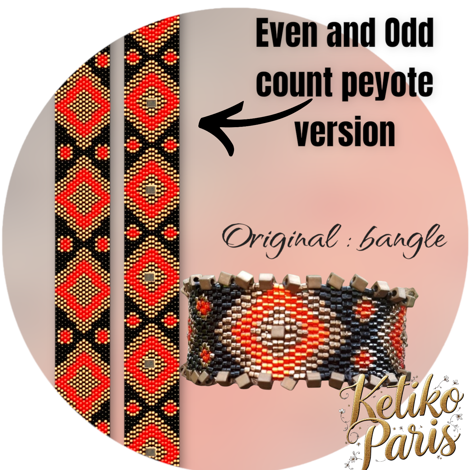 Schéma et explications pour réalisation d'un bracelet traditionnel tissé en peyote pair ET peyote double impair (Les 2 sont fournis) avec des perles miyuki delicas 11/0