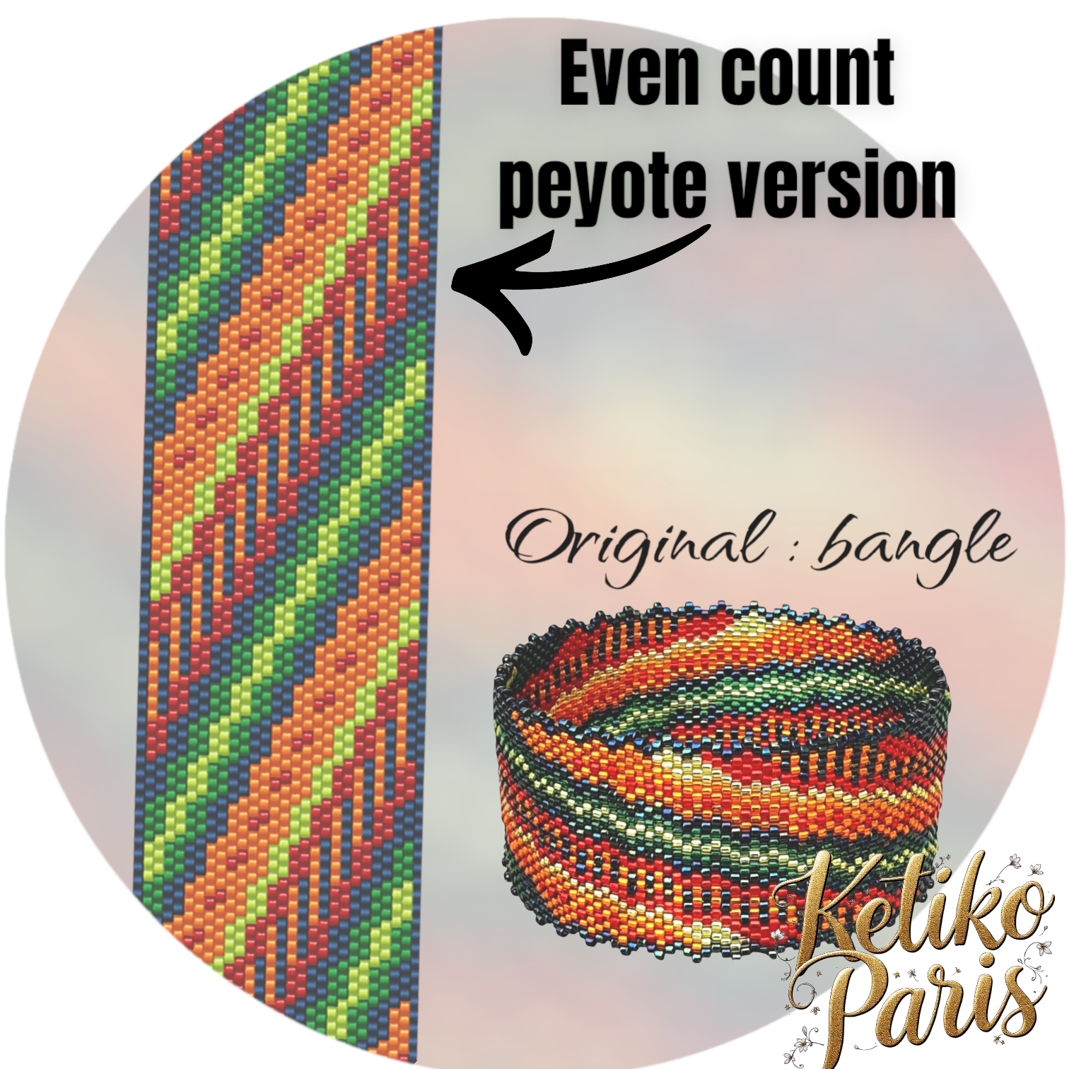Ce modèle est réalisé dans un tissage peyote classique, pair ou impair. Je propose parfois une version paire et impaire dans le même modèle