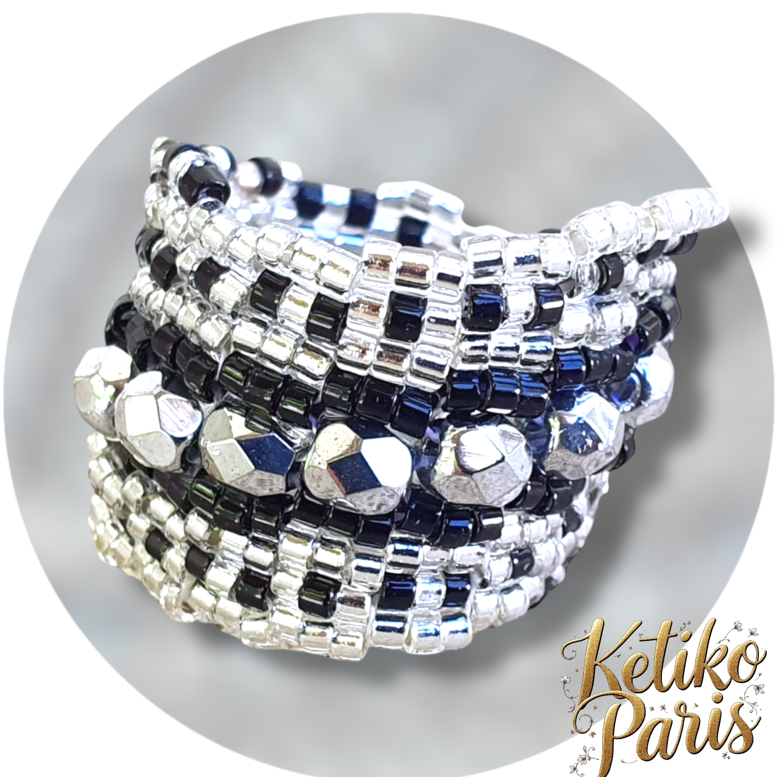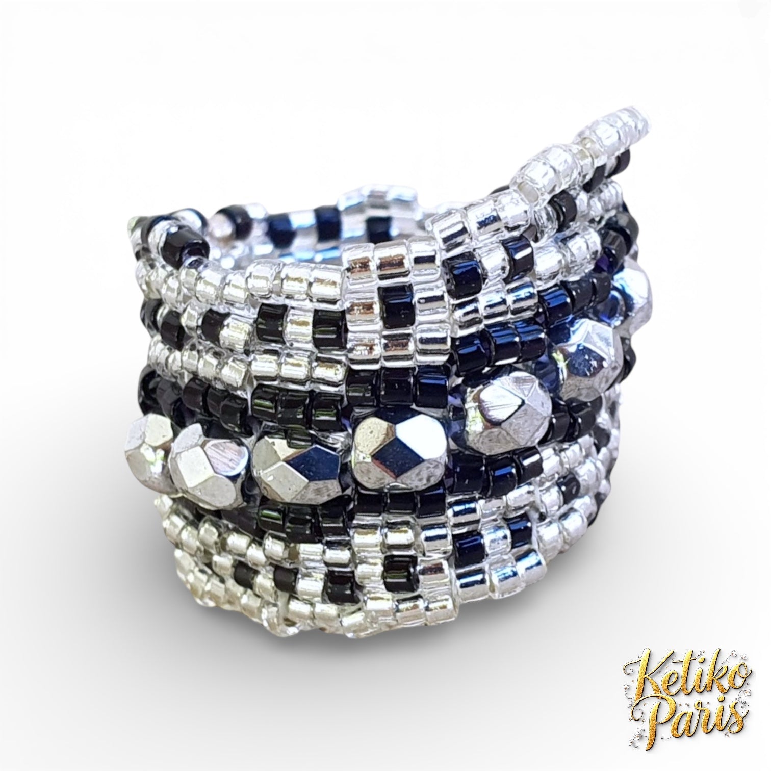 Les bagues sont tissées en point peyote. L'anneau est tissé circulairement puis le reste de la bague est tissé linéairement pour les modèles en pointe.